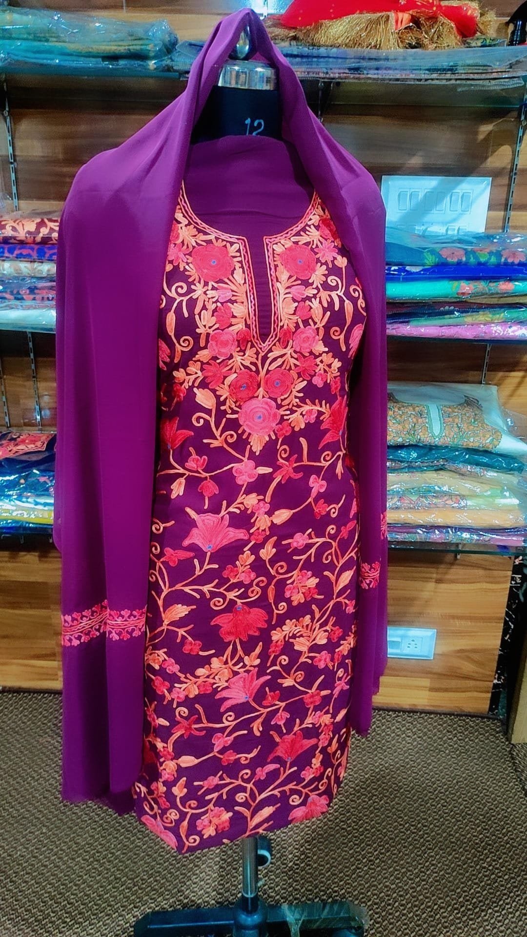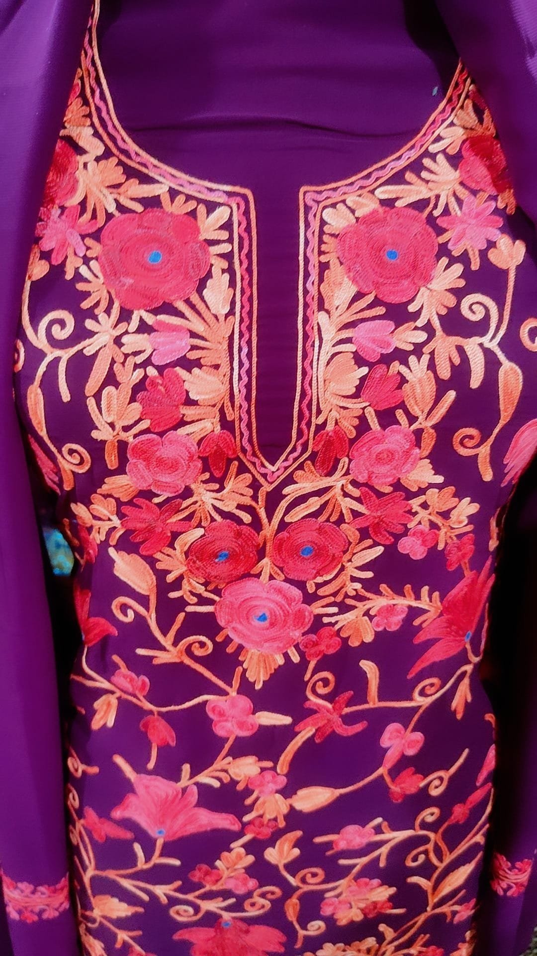 Whether you’re attending a wedding, a festive celebration, or a special event, our Georgette suits are sure to make heads turn and leave a lasting impression. The combination of Georgette fabric and Aari jamawar work strikes the perfect balance between classic elegance and contemporary flair, ensuring you stand out in the crowd with understated sophistication.