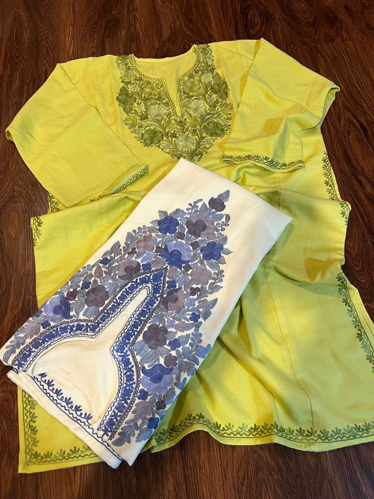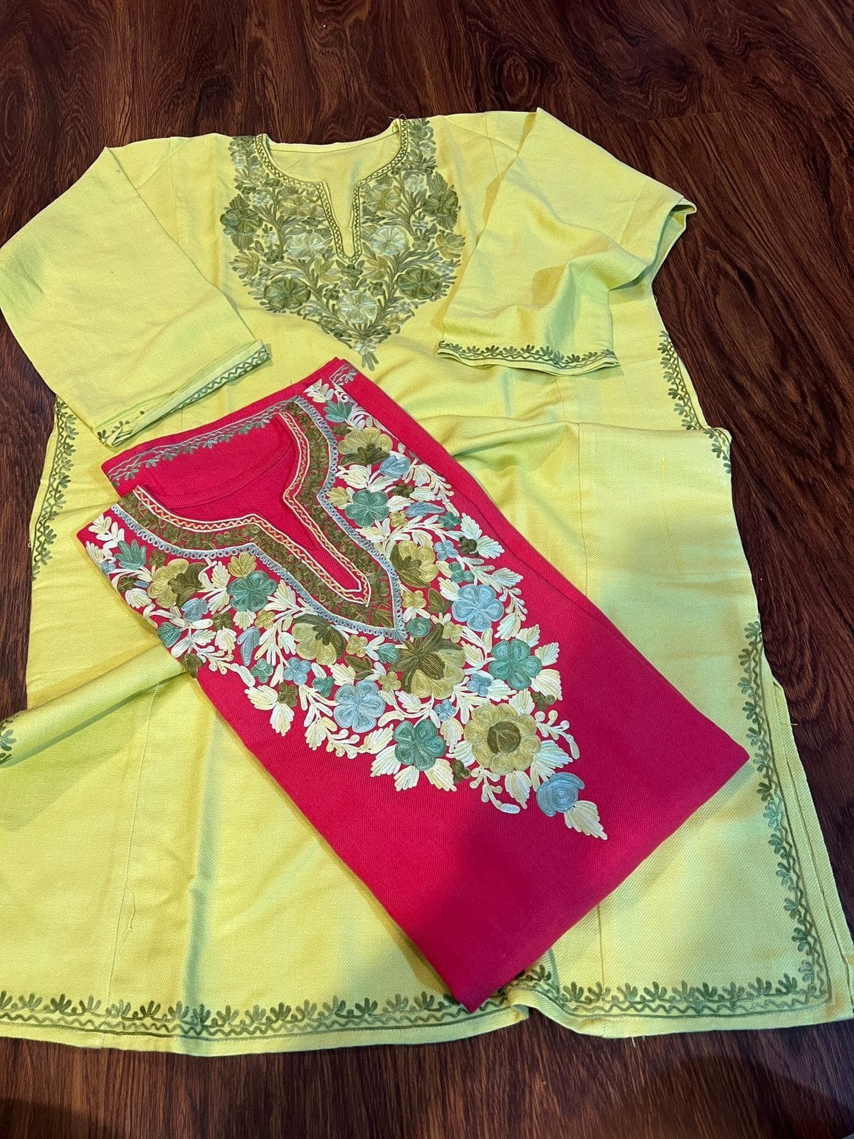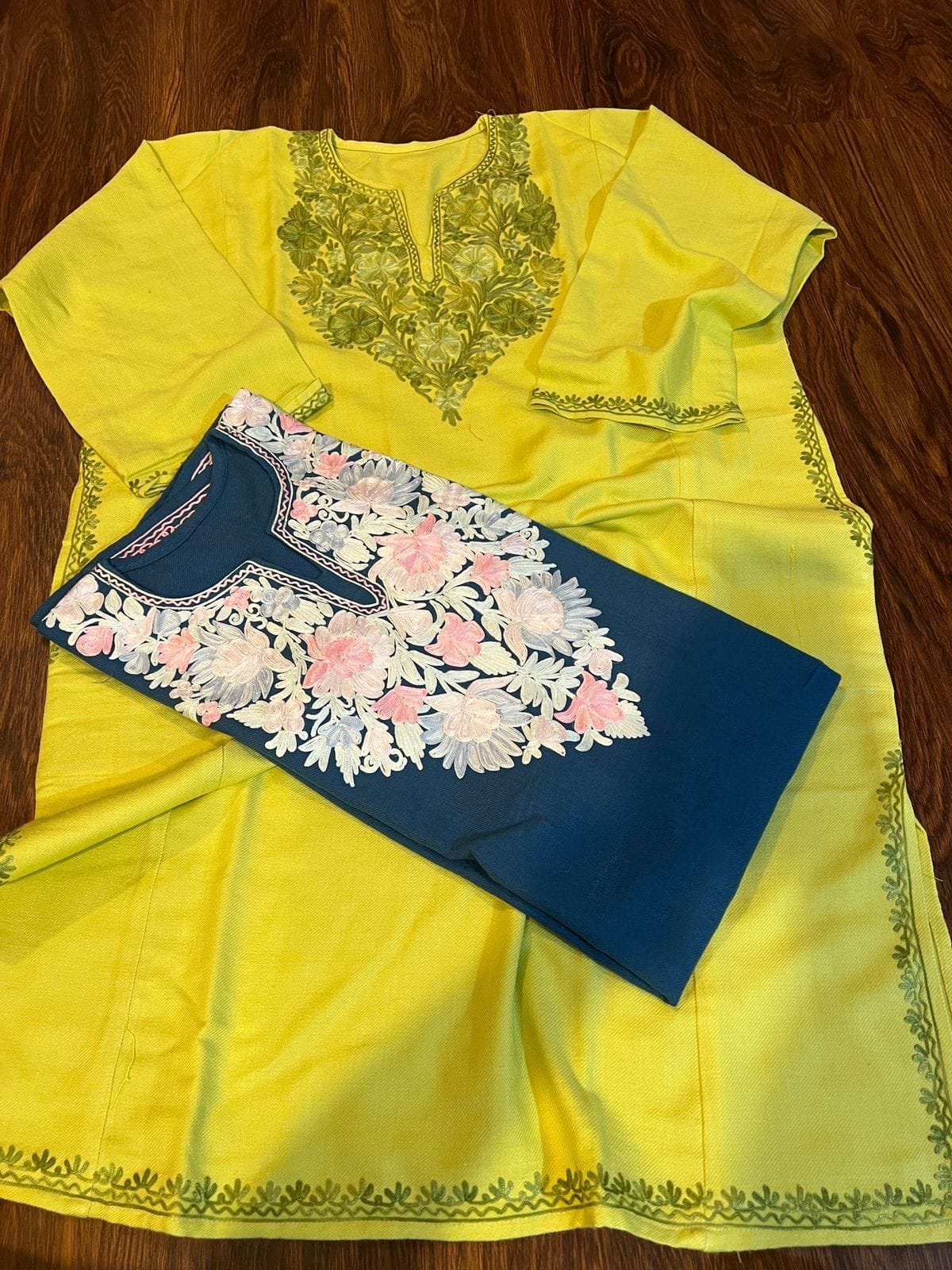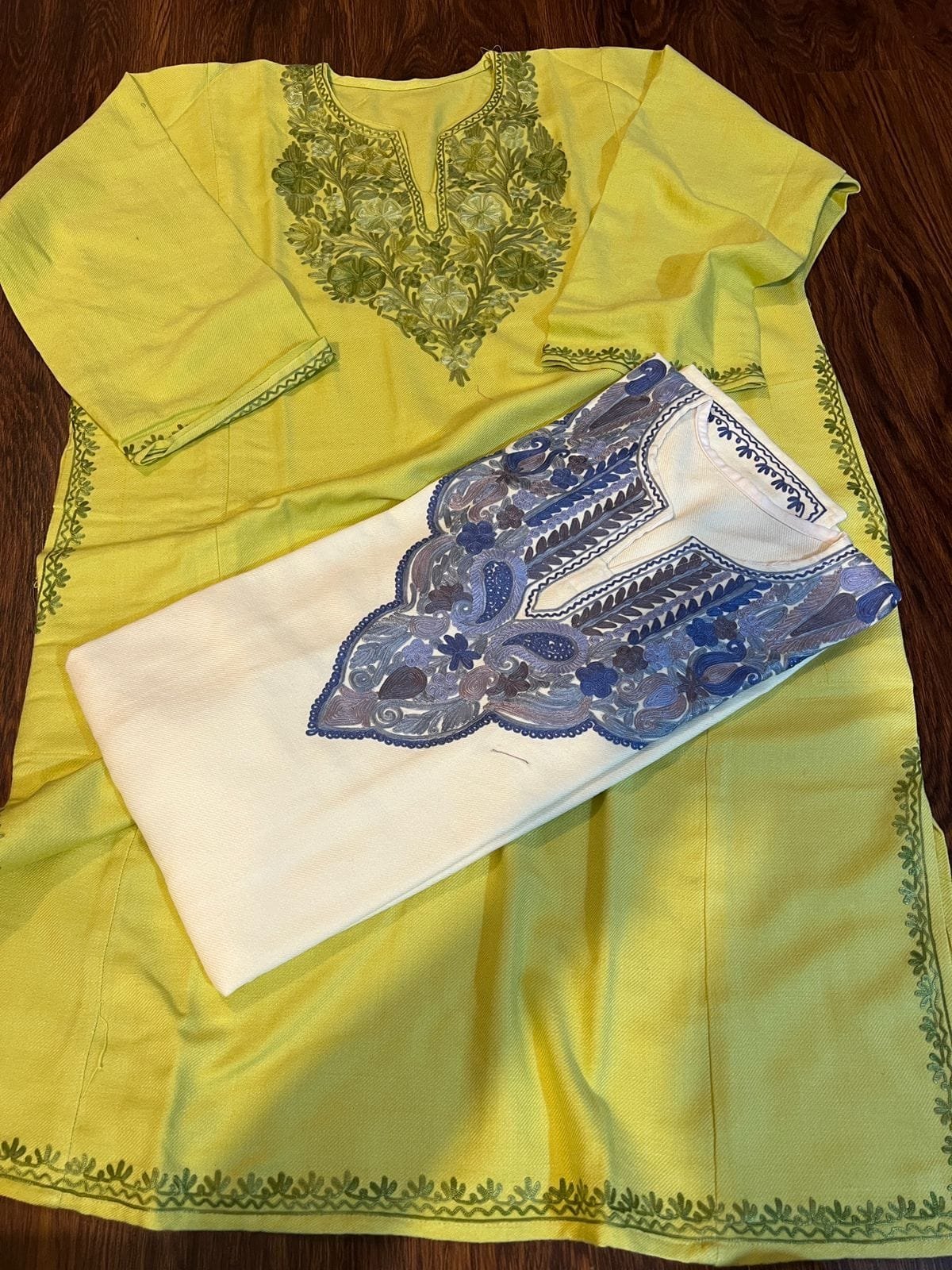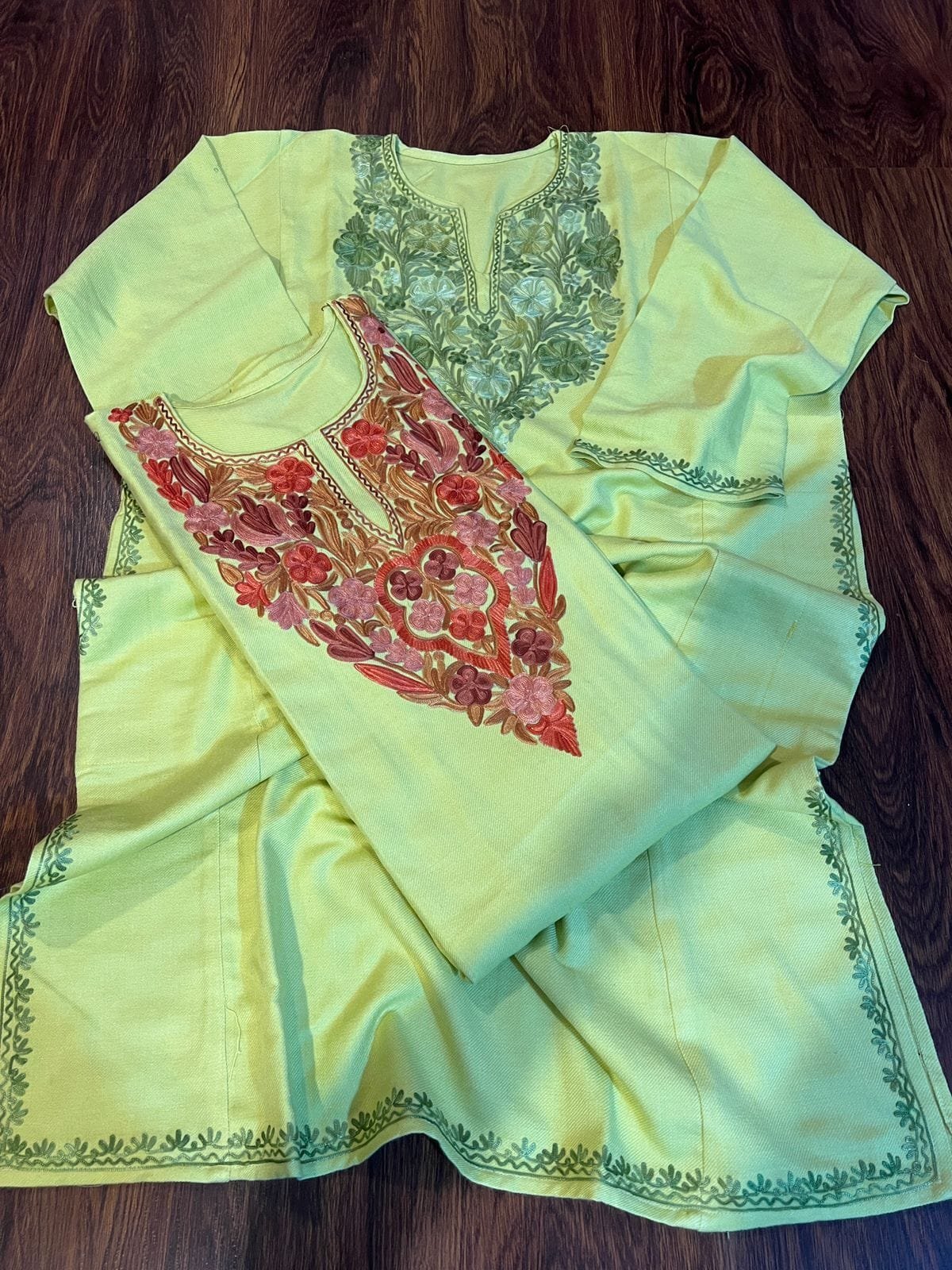 Discover the epitome of traditional Kashmiri craftsmanship with our exquisite collection of Ari Work Ladies Woollen Pherans. These pherans are not just garments; they are masterpieces that showcase the rich heritage of Kashmiri artistry, ensuring you stand out in both style and comfort.