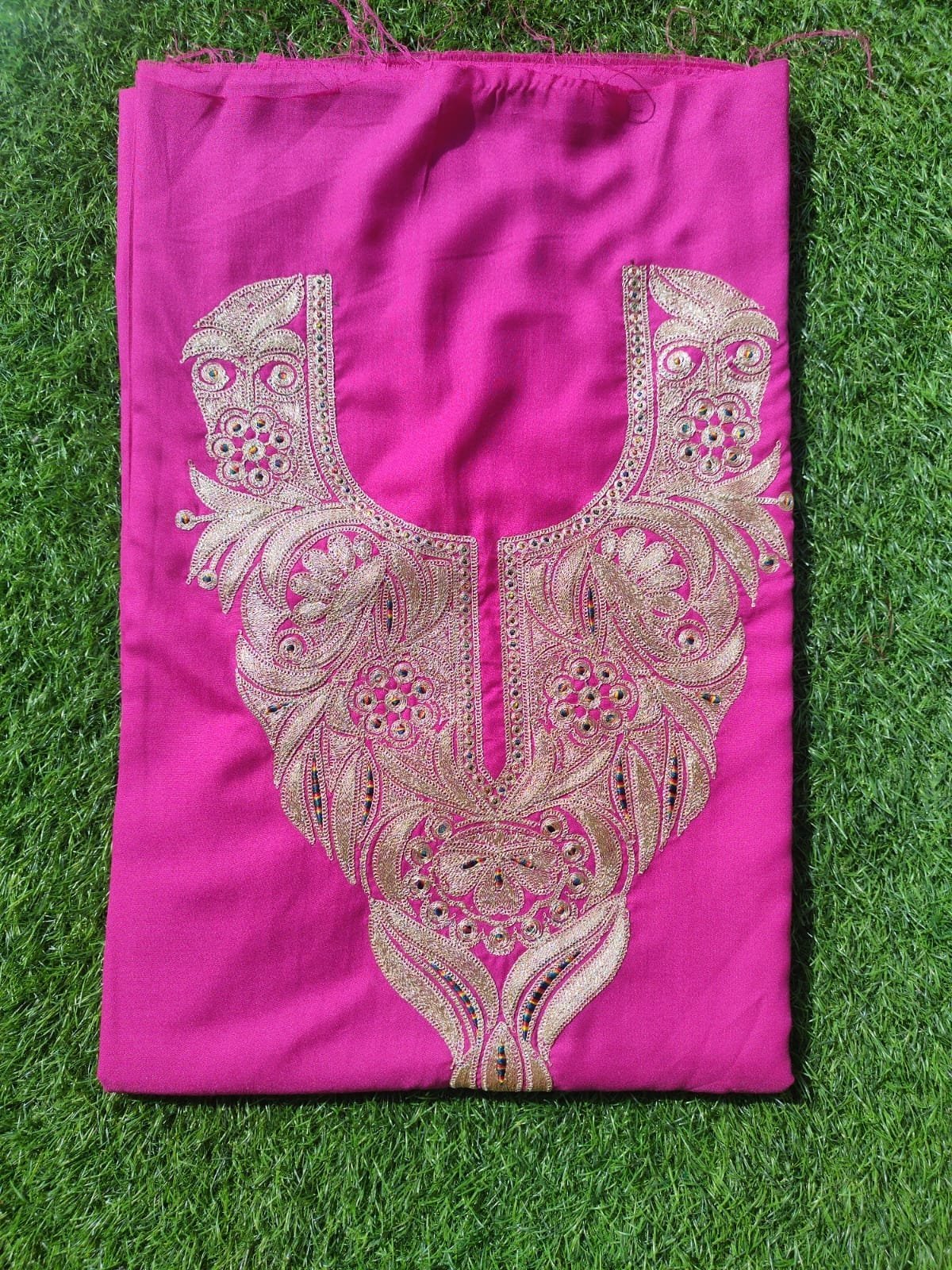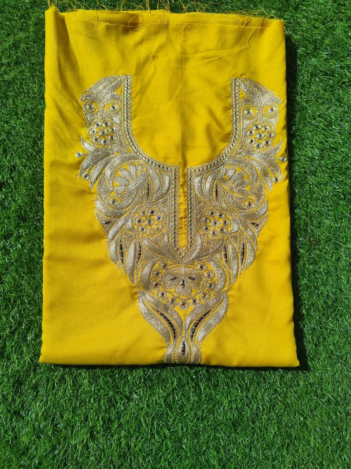 - Bottom: Coordinated plain fabric for trousers or salwar.