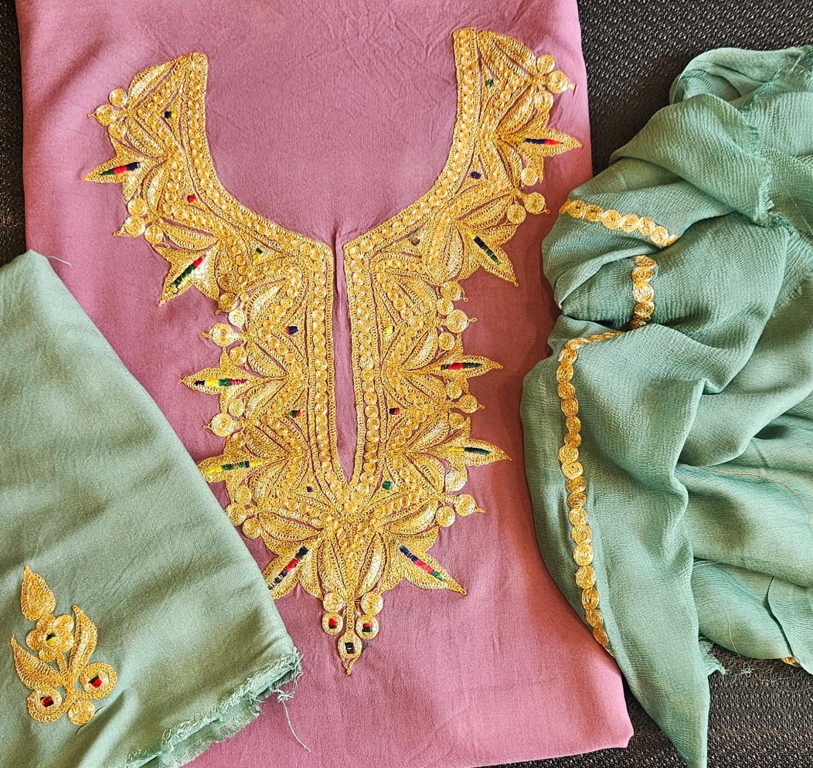Dupatta: Comes with a Half Pure Dupatta, delicately embellished with Tilla embroidery on both sides, adding charm and richness to the overall look.