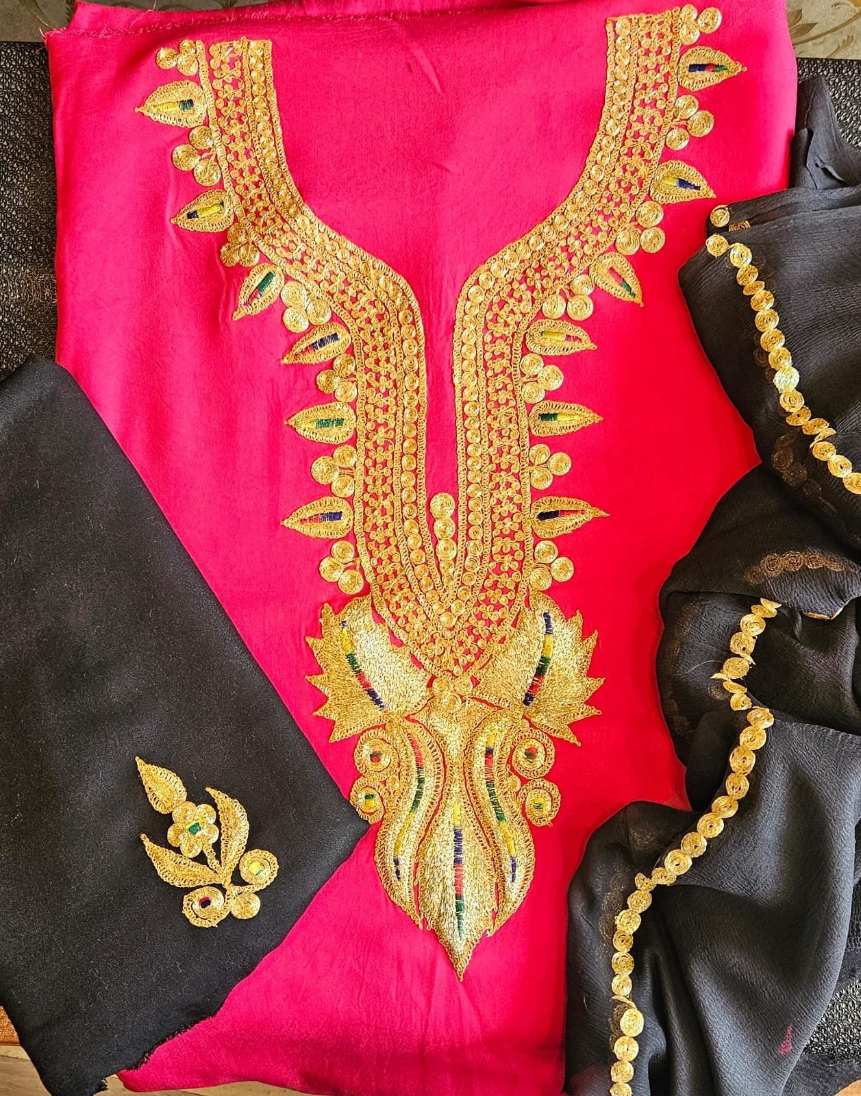 Dupatta: Comes with a Half Pure Dupatta, delicately embellished with Tilla embroidery on both sides, adding charm and richness to the overall look.