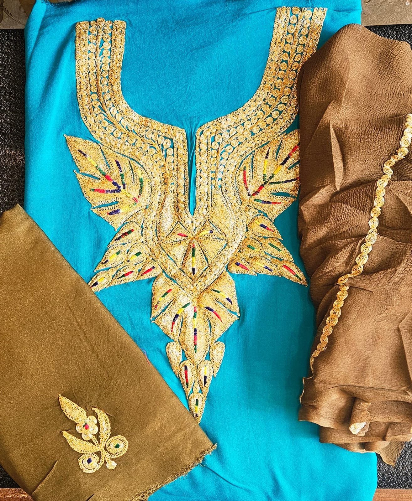 Dupatta: Comes with a Half Pure Dupatta, delicately embellished with Tilla embroidery on both sides, adding charm and richness to the overall look.