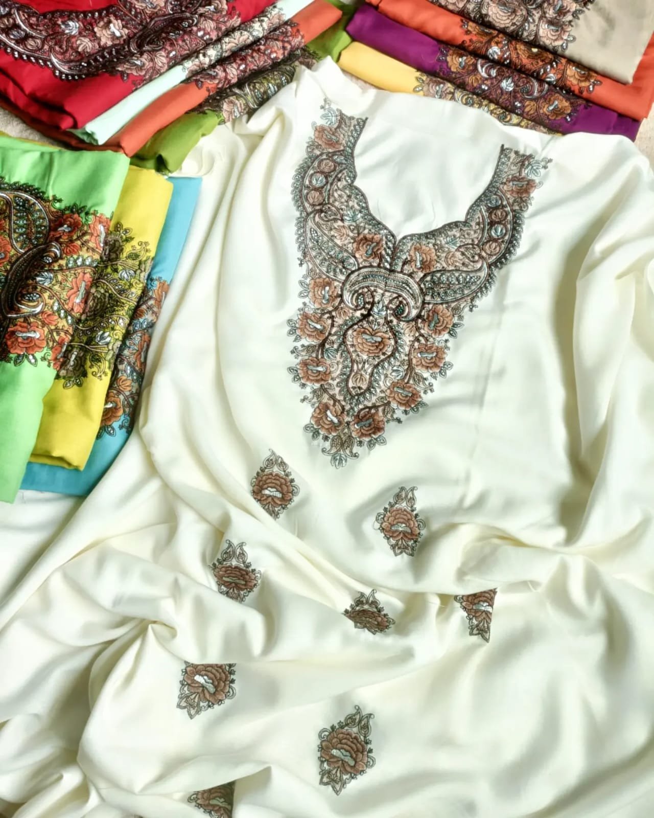 - Versatile and Timeless Design: The versatile design of this handbag makes it suitable for various occasions, whether it’s a casual outing or a special event. The classic combination of Aari embroidery and suede material ensures that this piece remains timeless and never goes out of style.