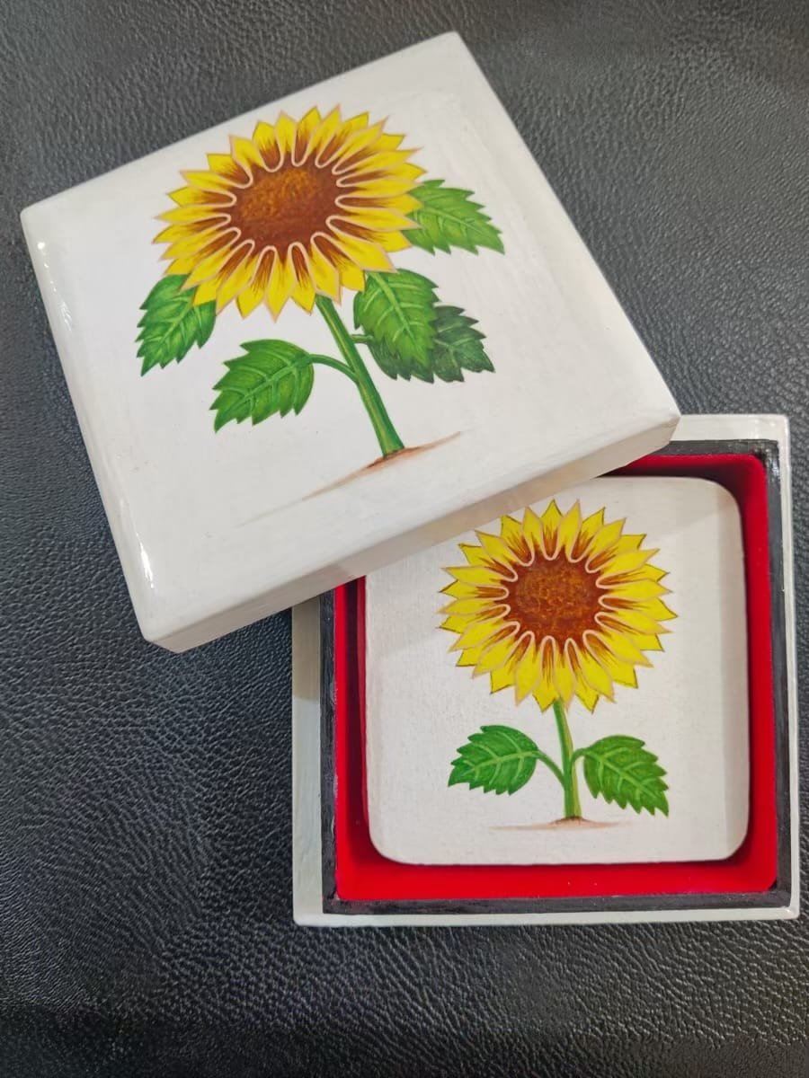 Add a touch of traditional Kashmiri artistry to your home with this Kashmir Papier-Mâché Coaster Box Set. Handcrafted by skilled artisans, this set includes a beautifully decorated storage box and matching coasters, each showcasing intricate floral patterns and vibrant colors inspired by the natural beauty of Kashmir.