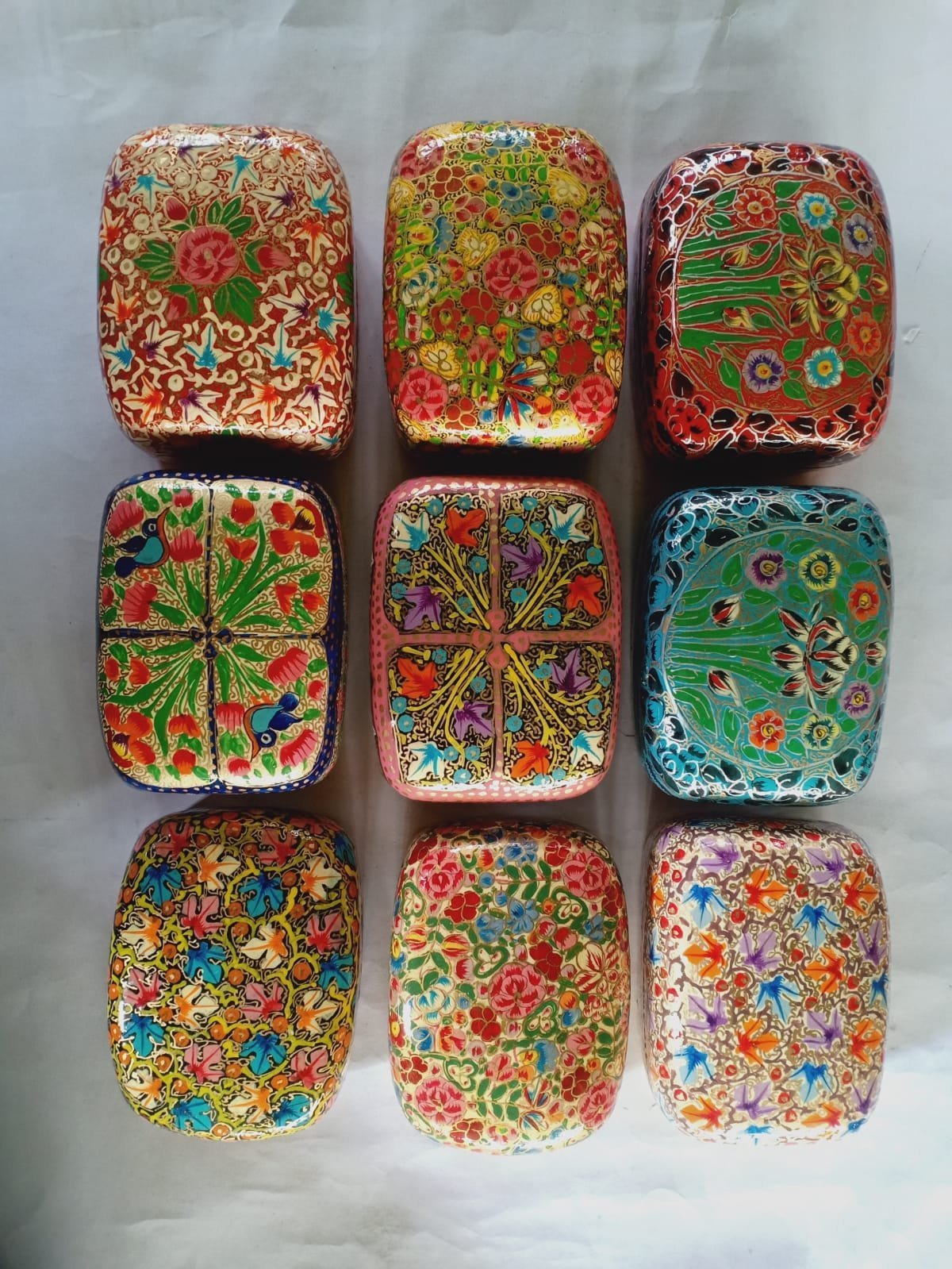 Enhance your inventory with the exquisite Kashmir Papier Mache Meter Boxes from Kashmir Online Shopping. Embrace the artistry of traditional Kashmiri craftsmanship and offer your customers a unique, eco-friendly decorative option.
