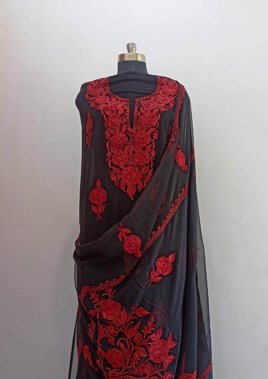 Indulge in Elegance with our Kashmiri 3-Piece Georgette Suit – Adorned with Exquisite Aari Work