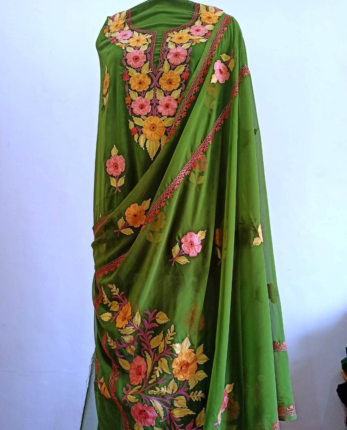 Indulge in Elegance with our Kashmiri 3-Piece Georgette Suit – Adorned with Exquisite Aari Work
