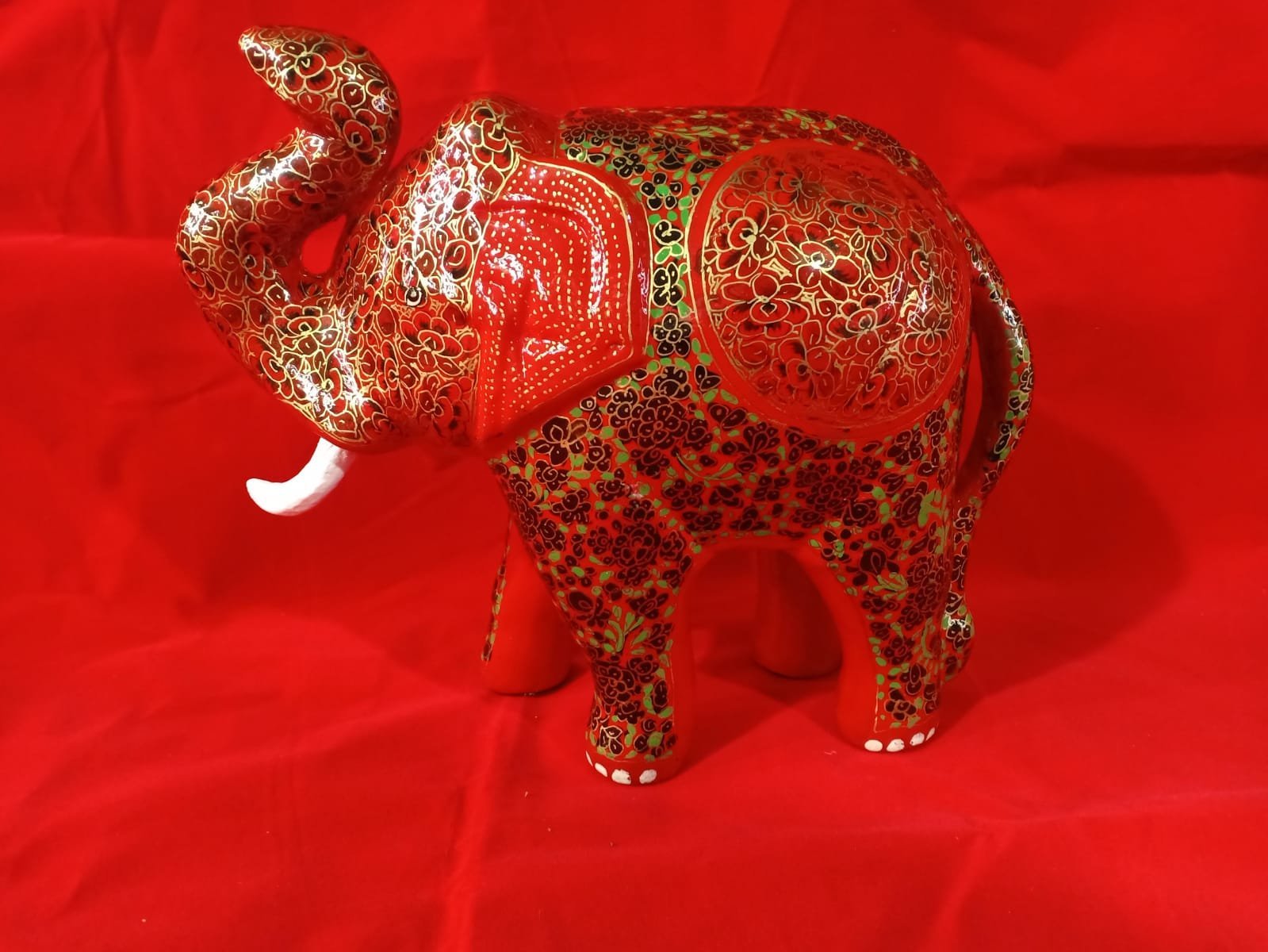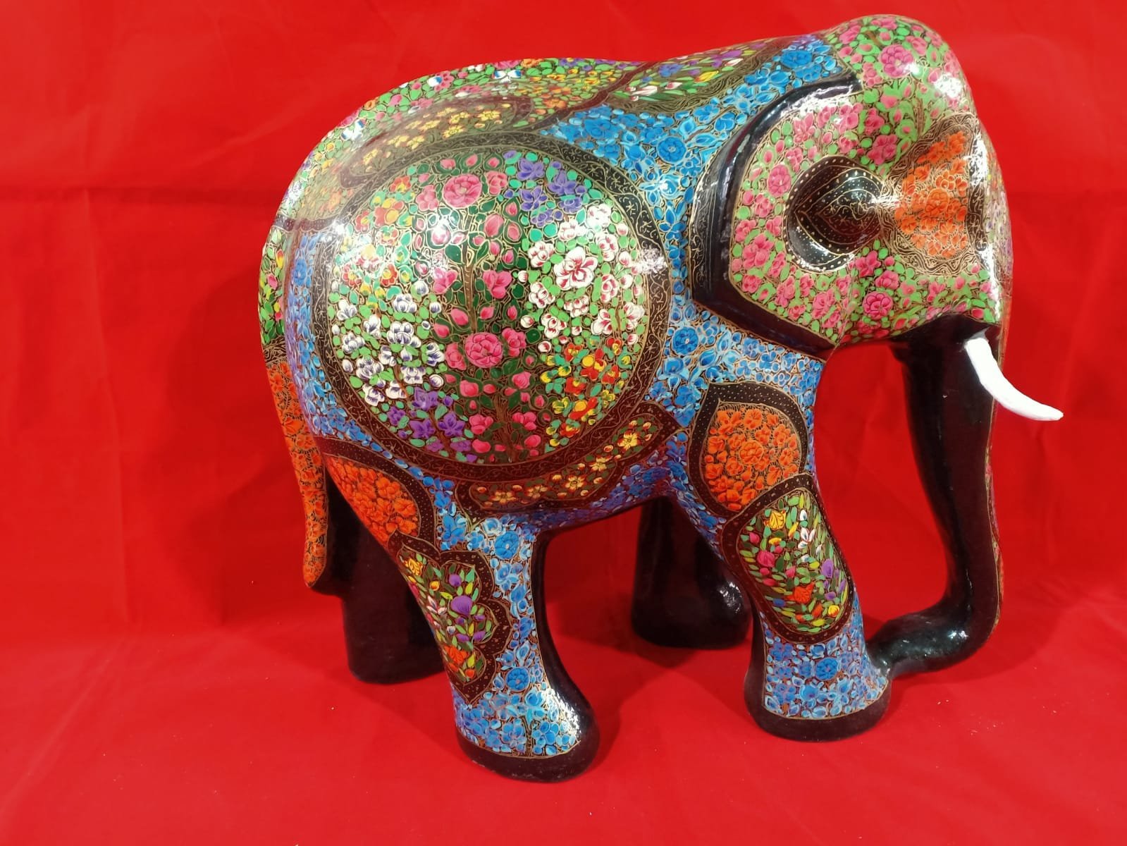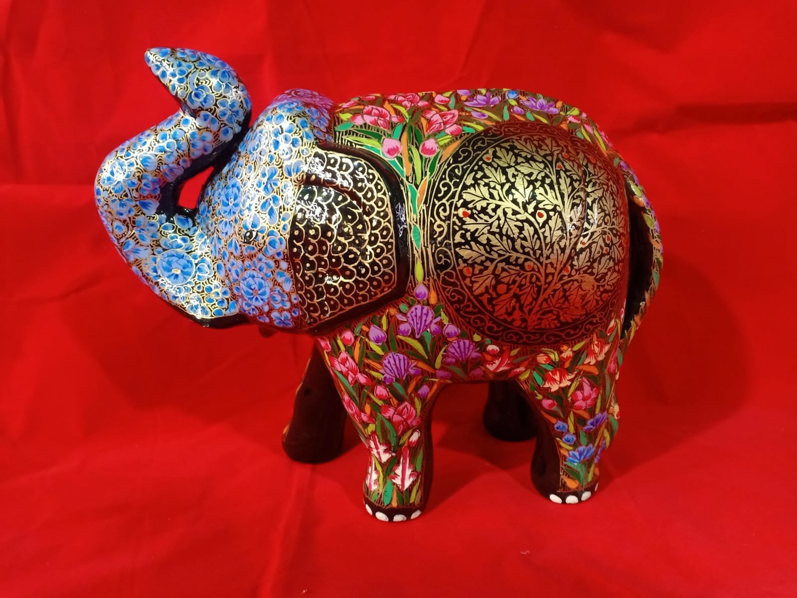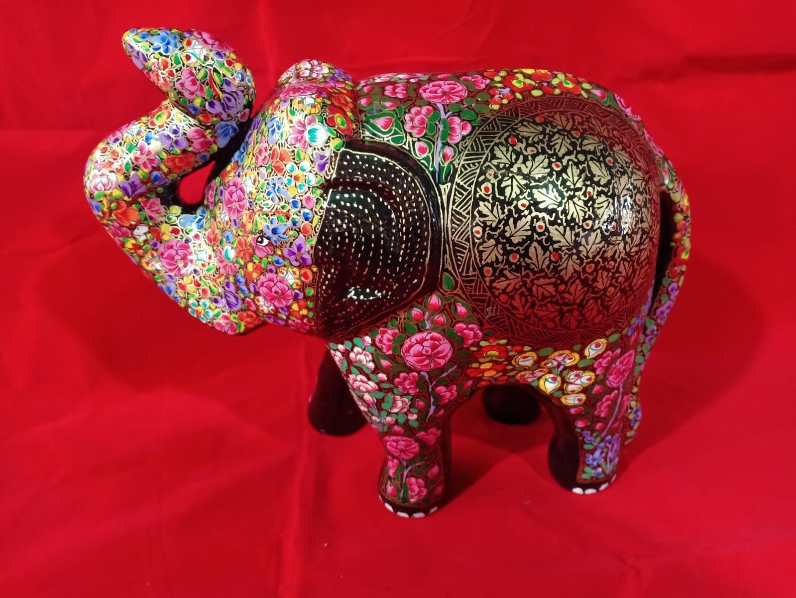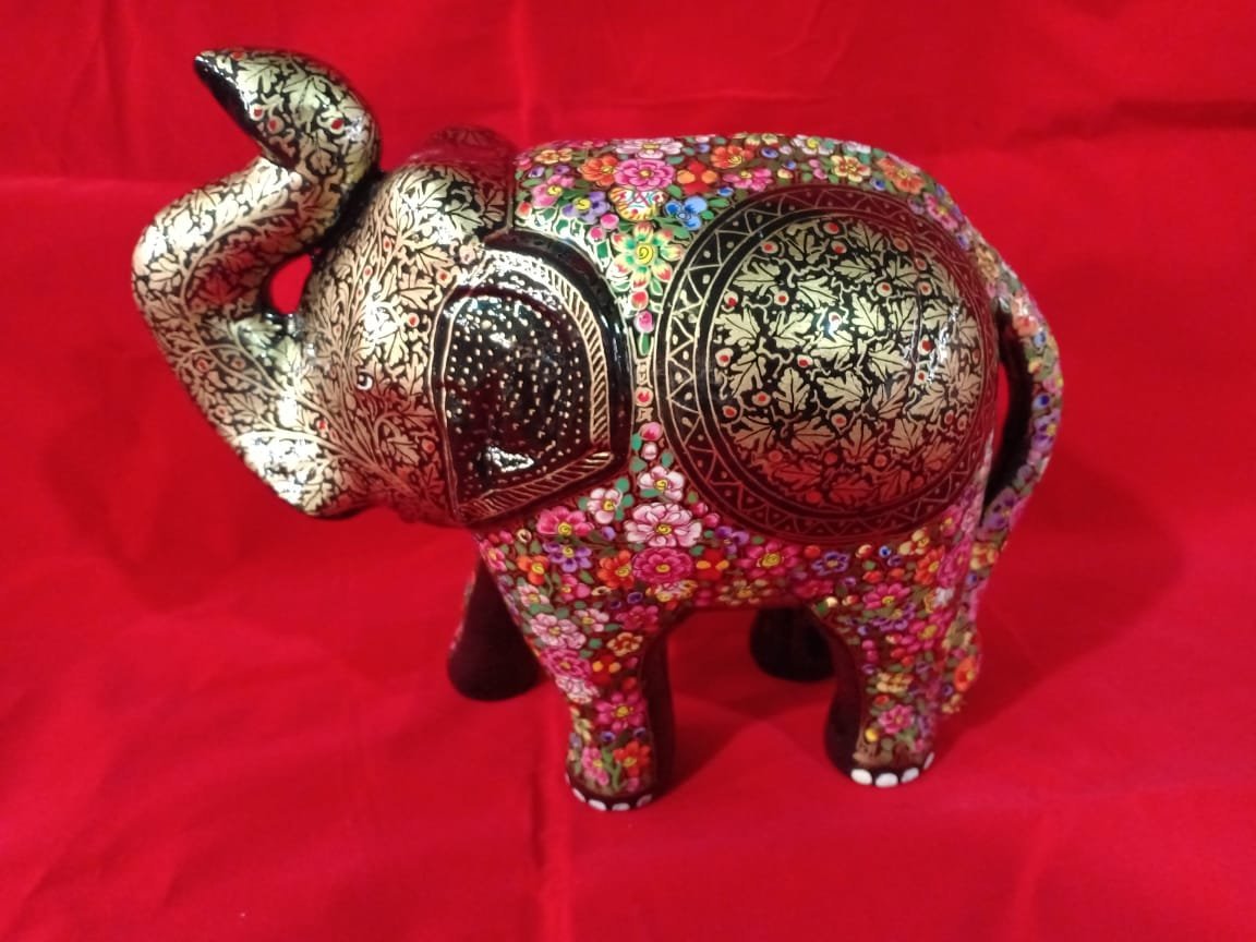 Craftsmanship: The craftsmanship of the elephant sculpture reflects the expertise and dedication of Kashmiri artisans, who employ time-honored techniques passed down through generations. Each brushstroke is executed with precision and care, resulting in a finely detailed and visually stunning work of art.