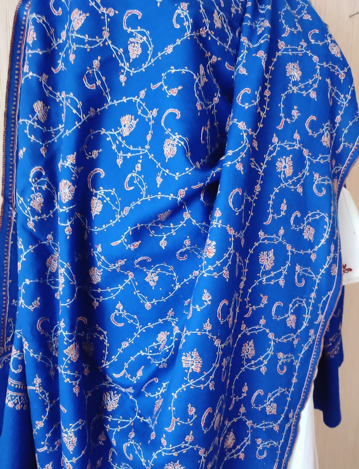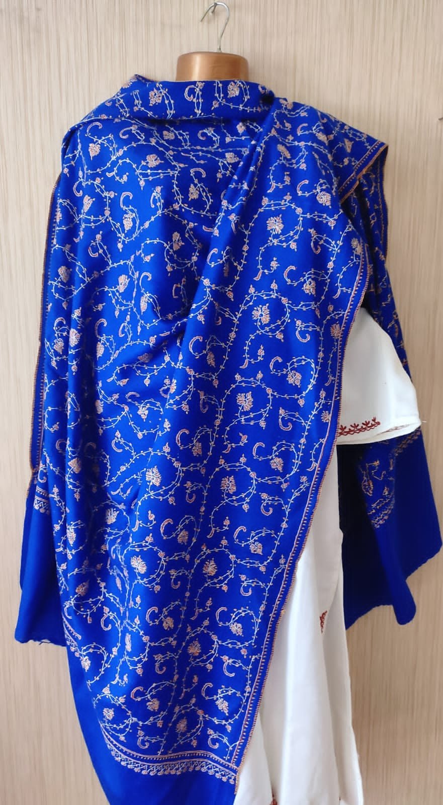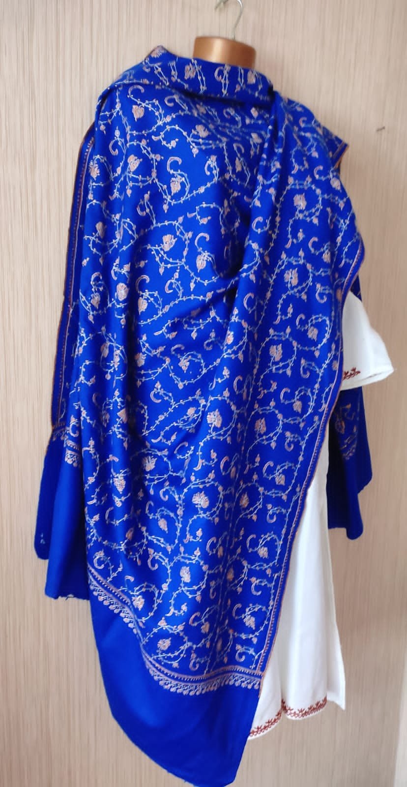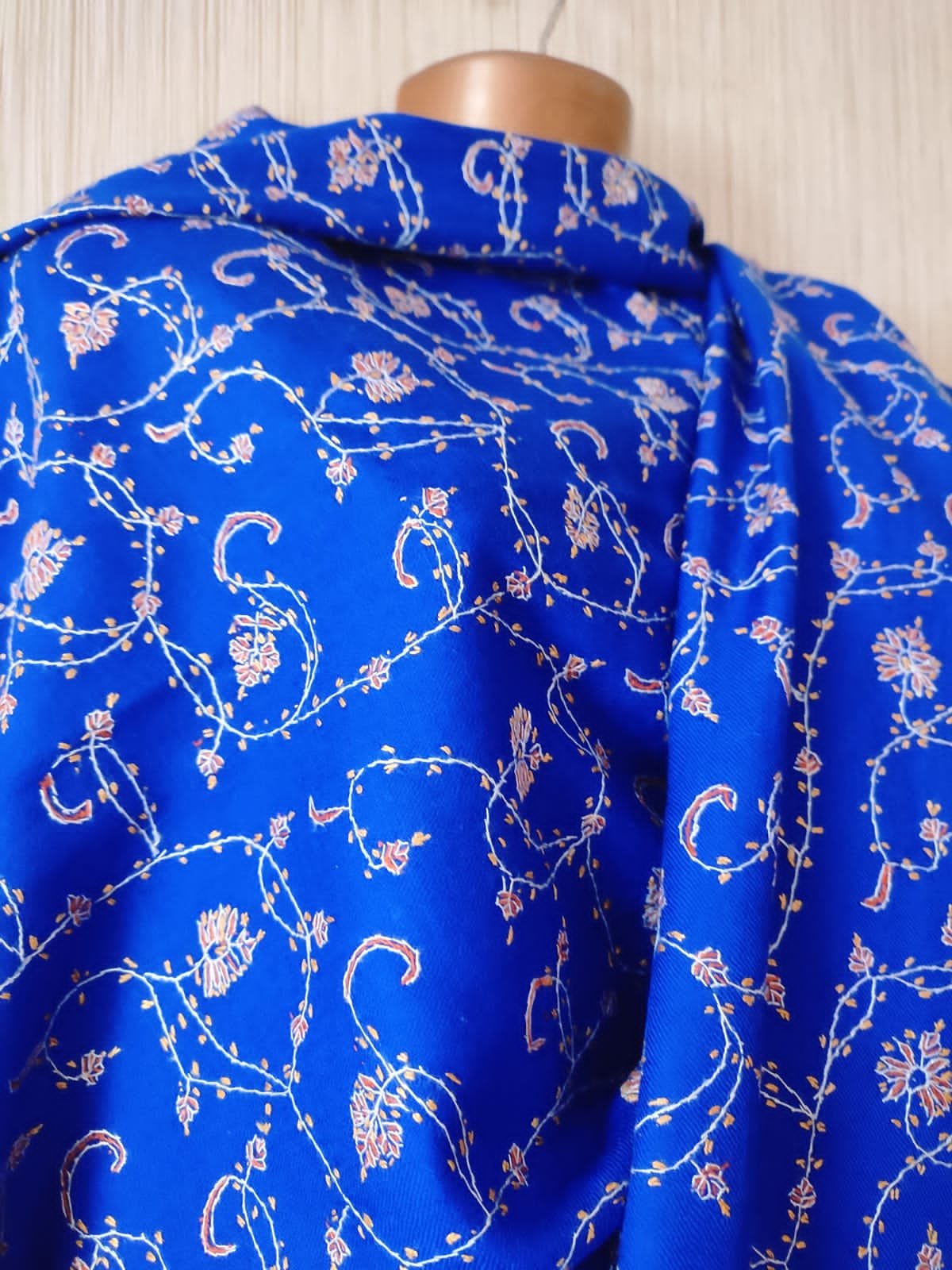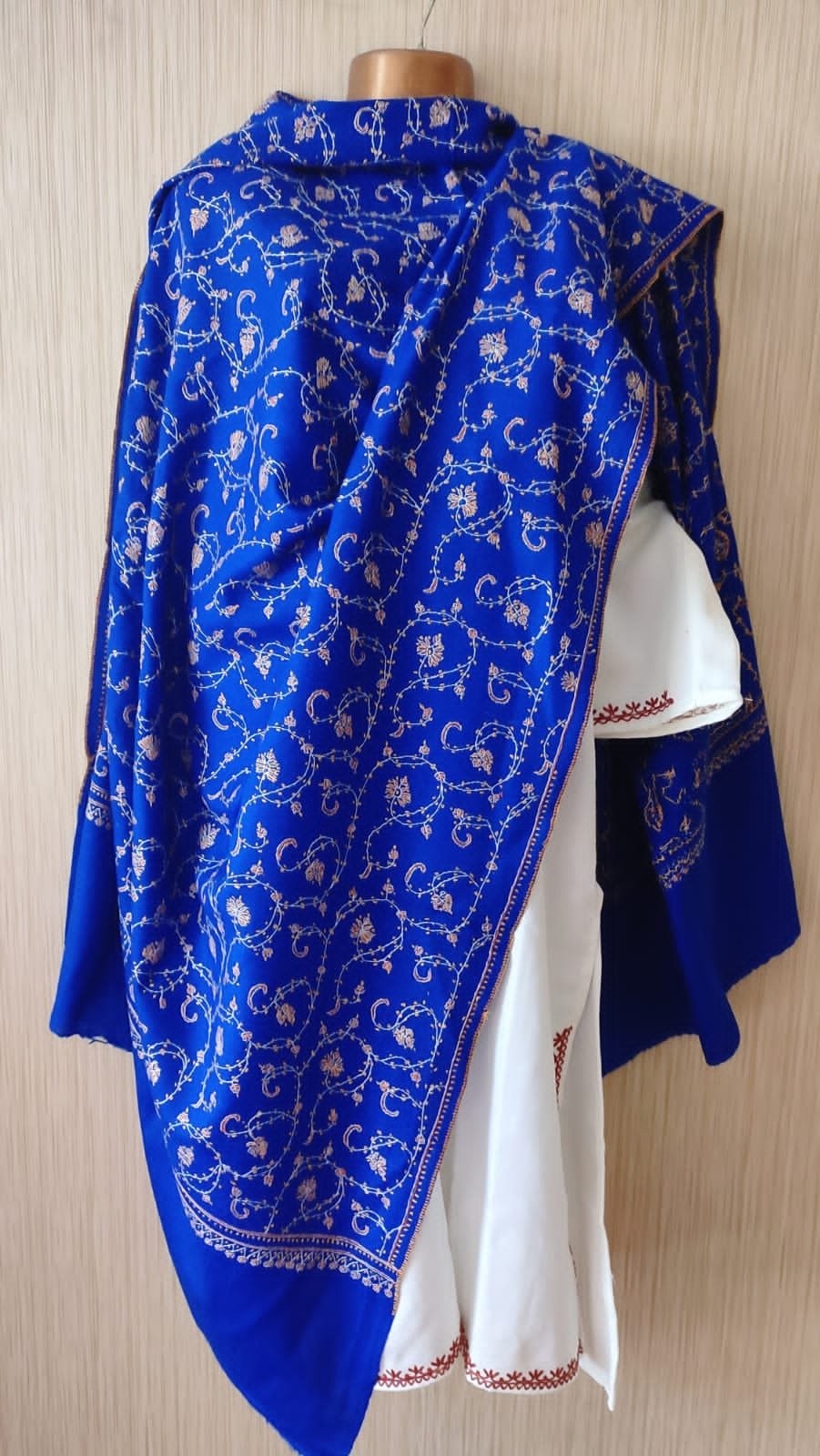 These are the finest hand-embroidered, hand-made shawls made of 50% pure Pashmina and blended with 50% pure cashmere wool.