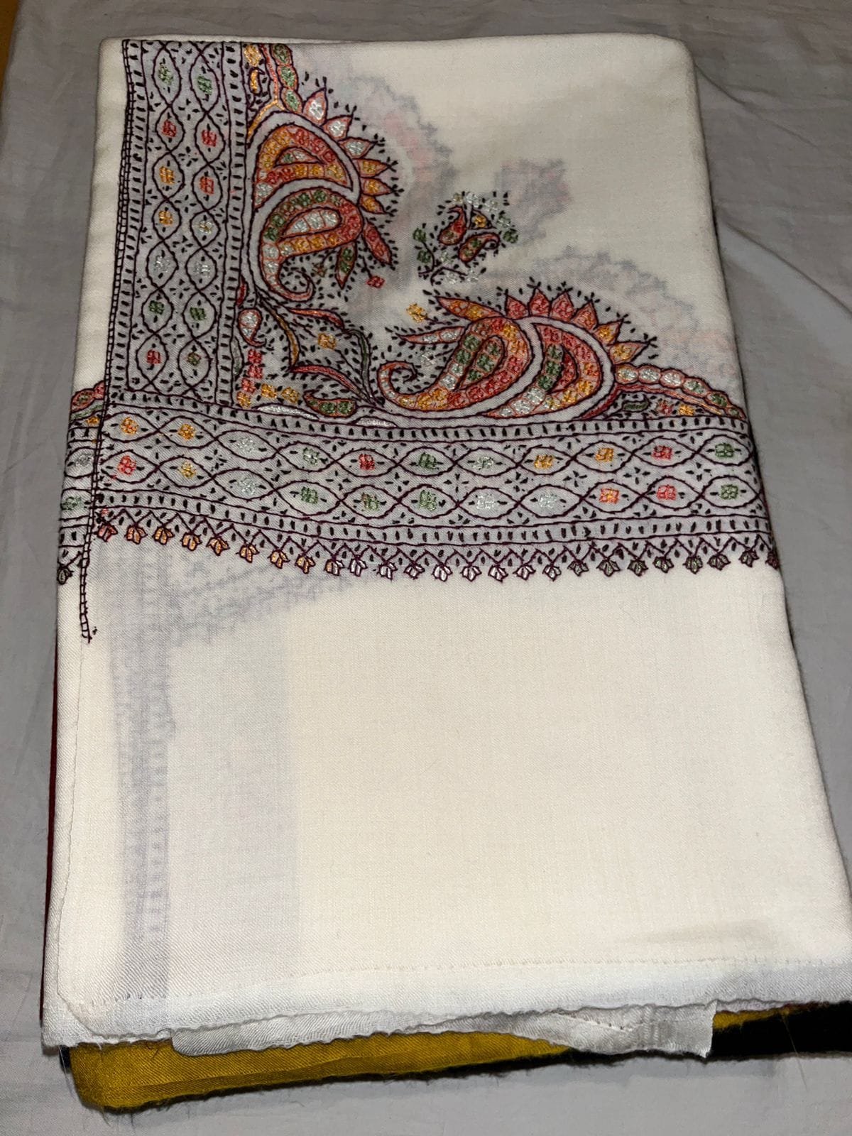 These are the finest hand-embroidered, hand-made shawls made of 50% pure Pashmina and blended with 50% pure cashmere wool.