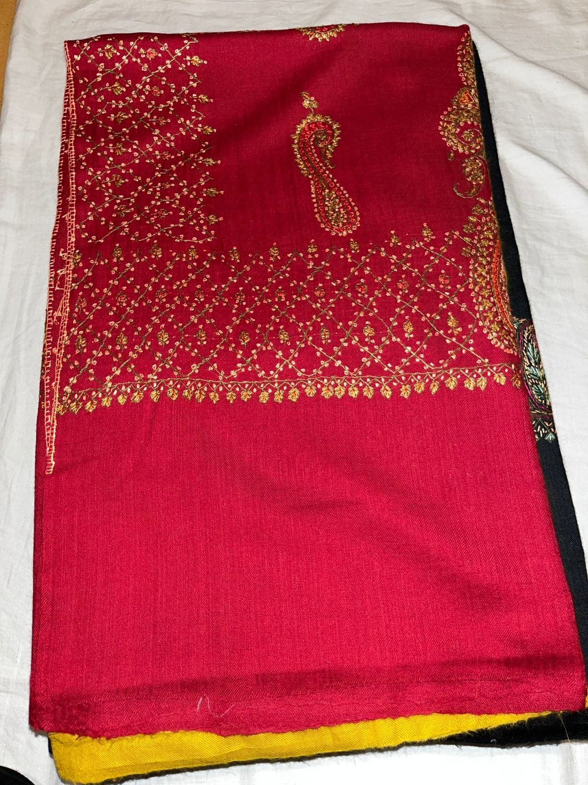 Pashmina Kashmiri Shawl Red, Doordaar Embroidery Work