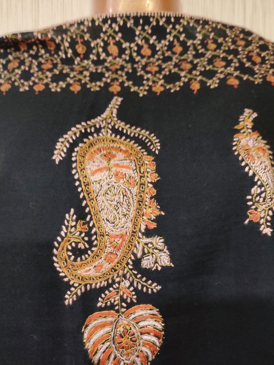 The word Pure Handloom Pashmina literally means soft gold, so precious and expensive this wool is. This sophisticated brown Pure Handloom Pashmina shawl combine this fine Pure Handloom Pashmina with other premium wool to create a piece of clothing so soft, so exquisite that anyone would be lucky to drape it on. It has been further enhanced with intricate floral embroidery that has been done entirely by hand by the skilled craftsmen of Kashmir.