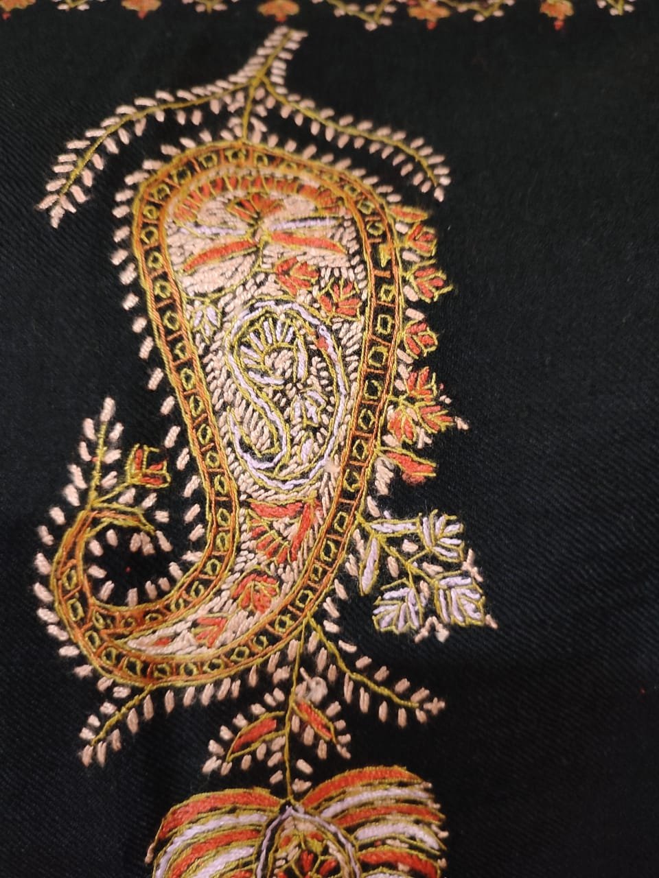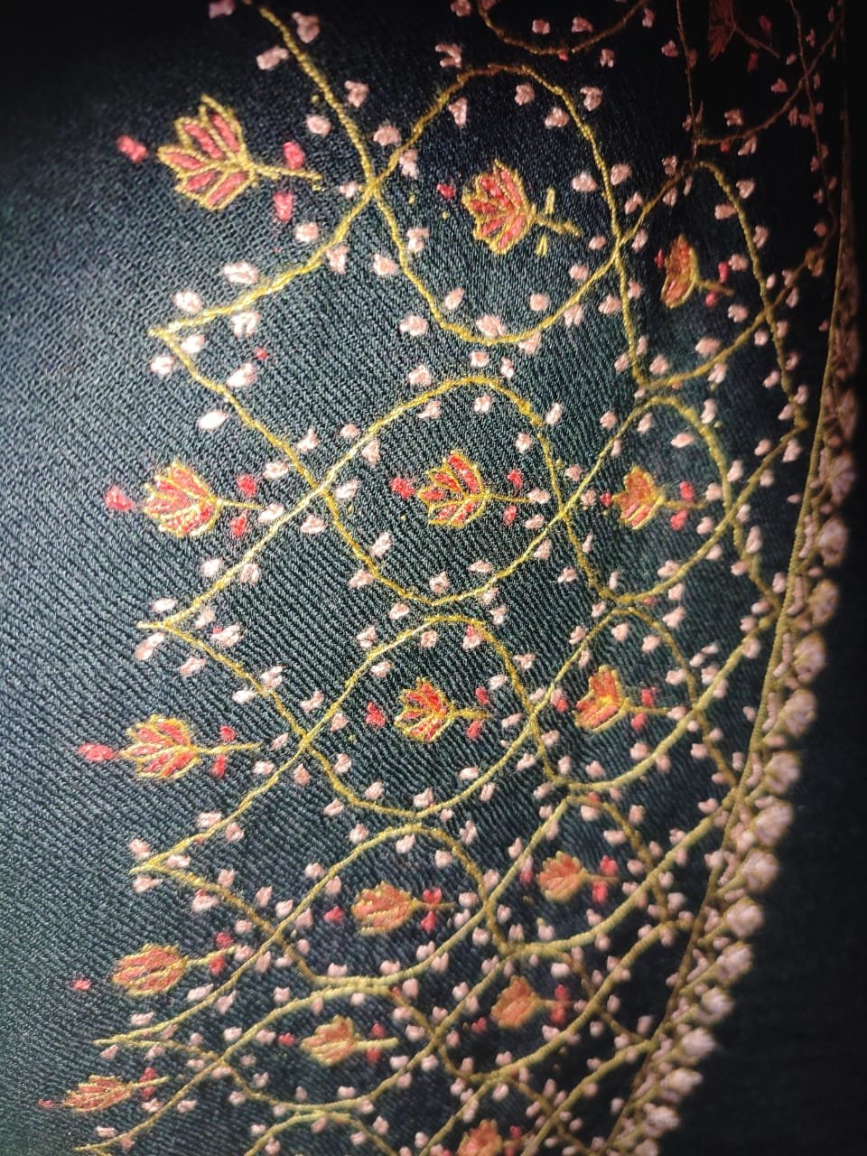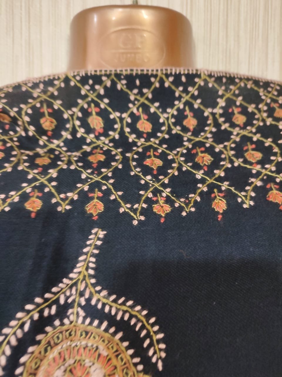 These are the finest hand-embroidered, hand-made shawls made of 50% pure Pashmina and blended with 50% pure cashmere wool.