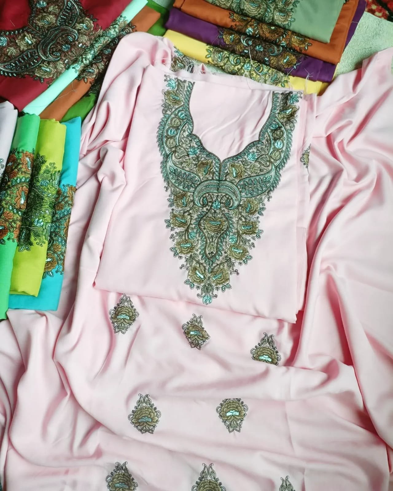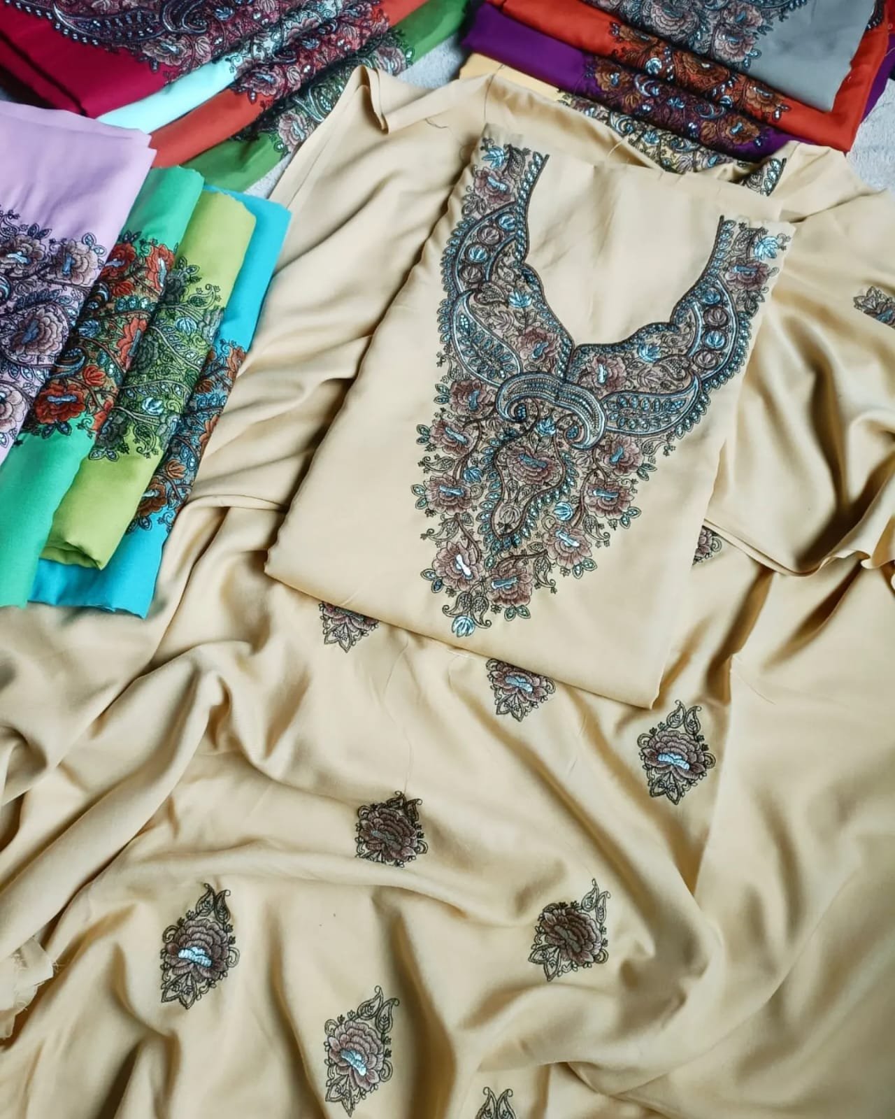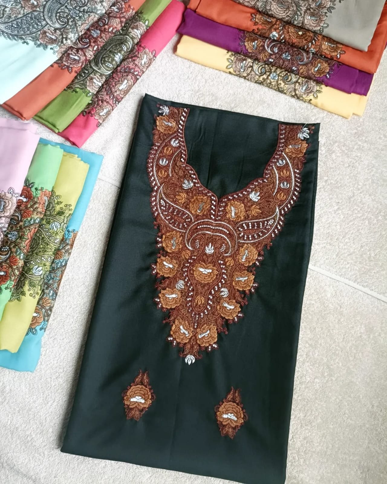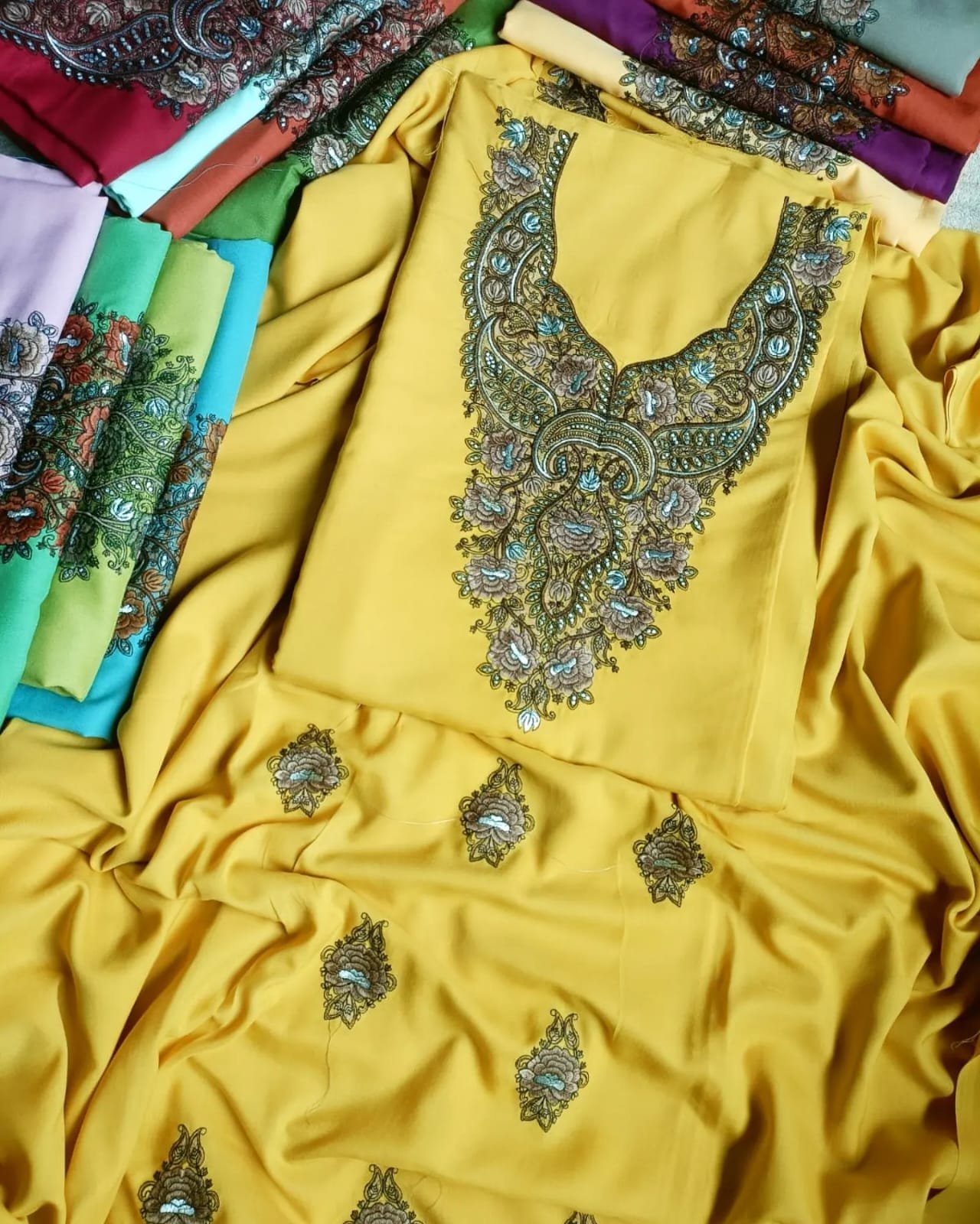 - Variety of Colors: Choose from a vibrant spectrum of colors, each carefully selected to complement the intricate Sozni embroidery and enhance the overall appeal of the suits.