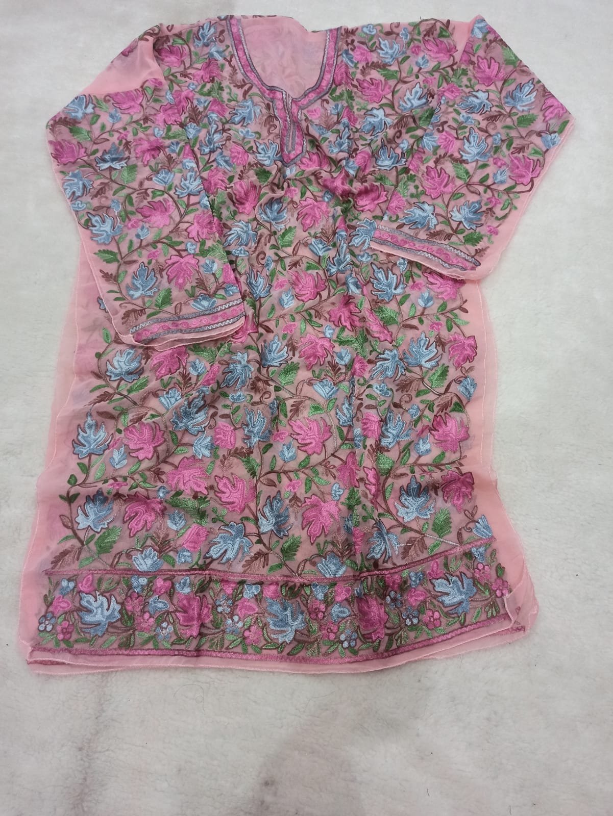 Elevate your summer style with the exquisite beauty of our beautiful long tops. With premium Ari work embellishments and soft Georgette fabric, these tops are sure to become a staple in your wardrobe. Shop now and step out in style this season!