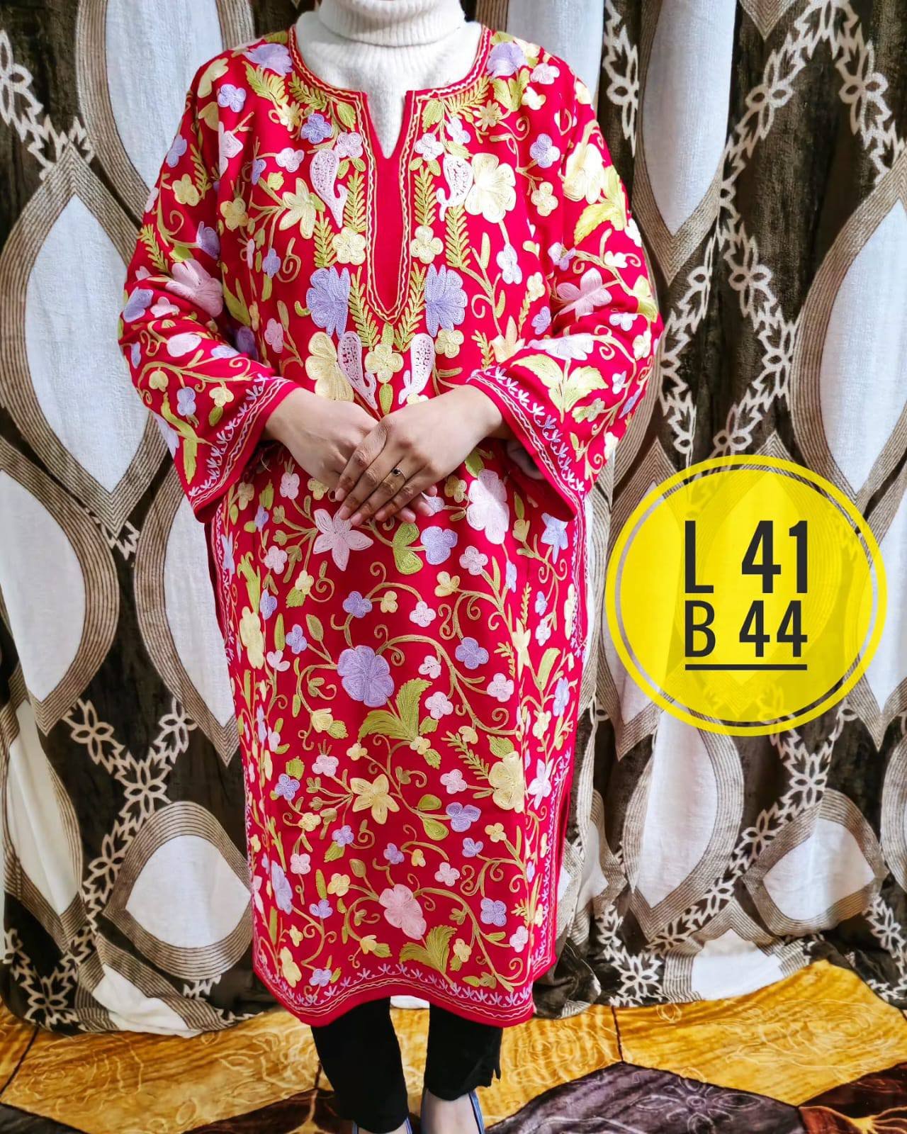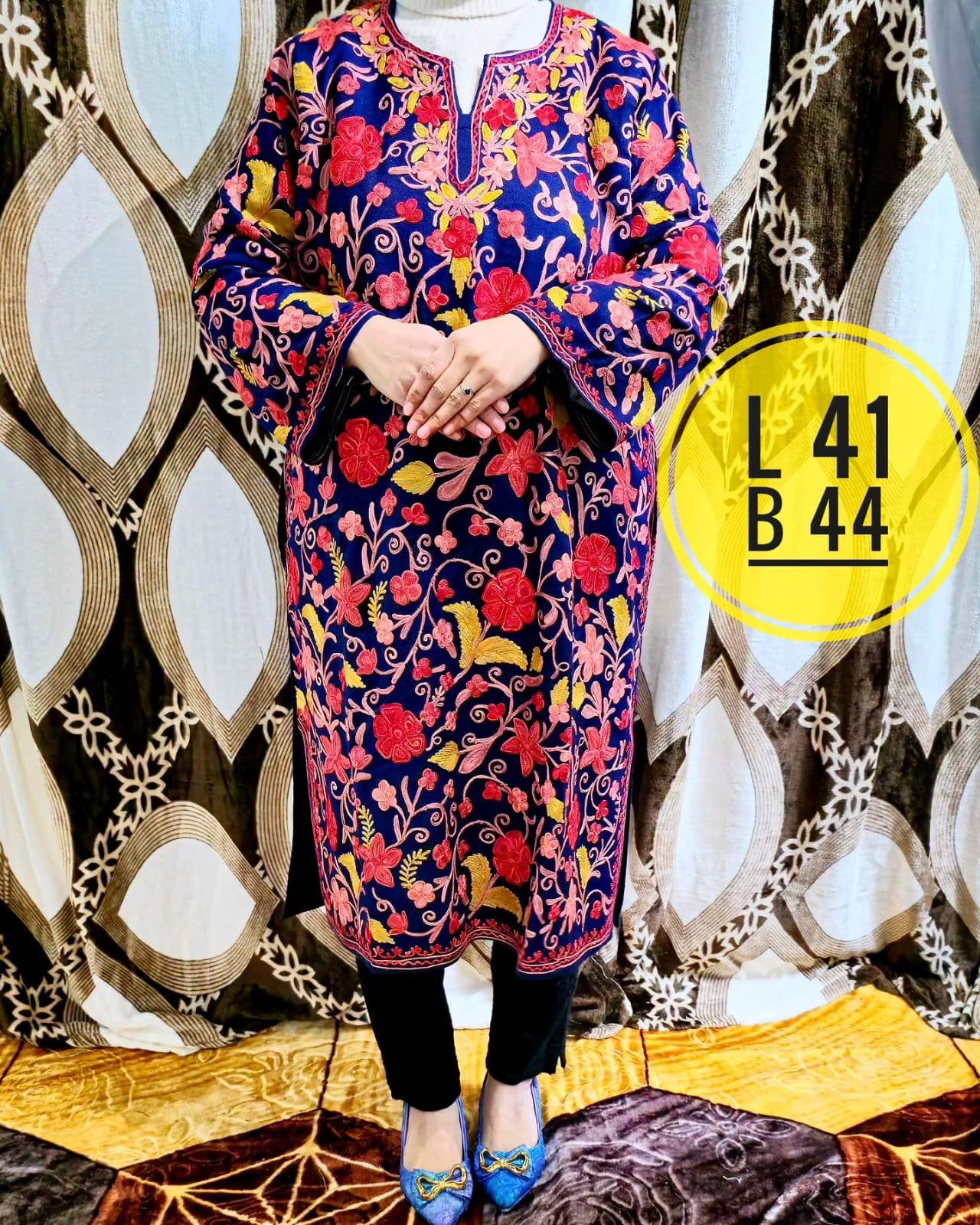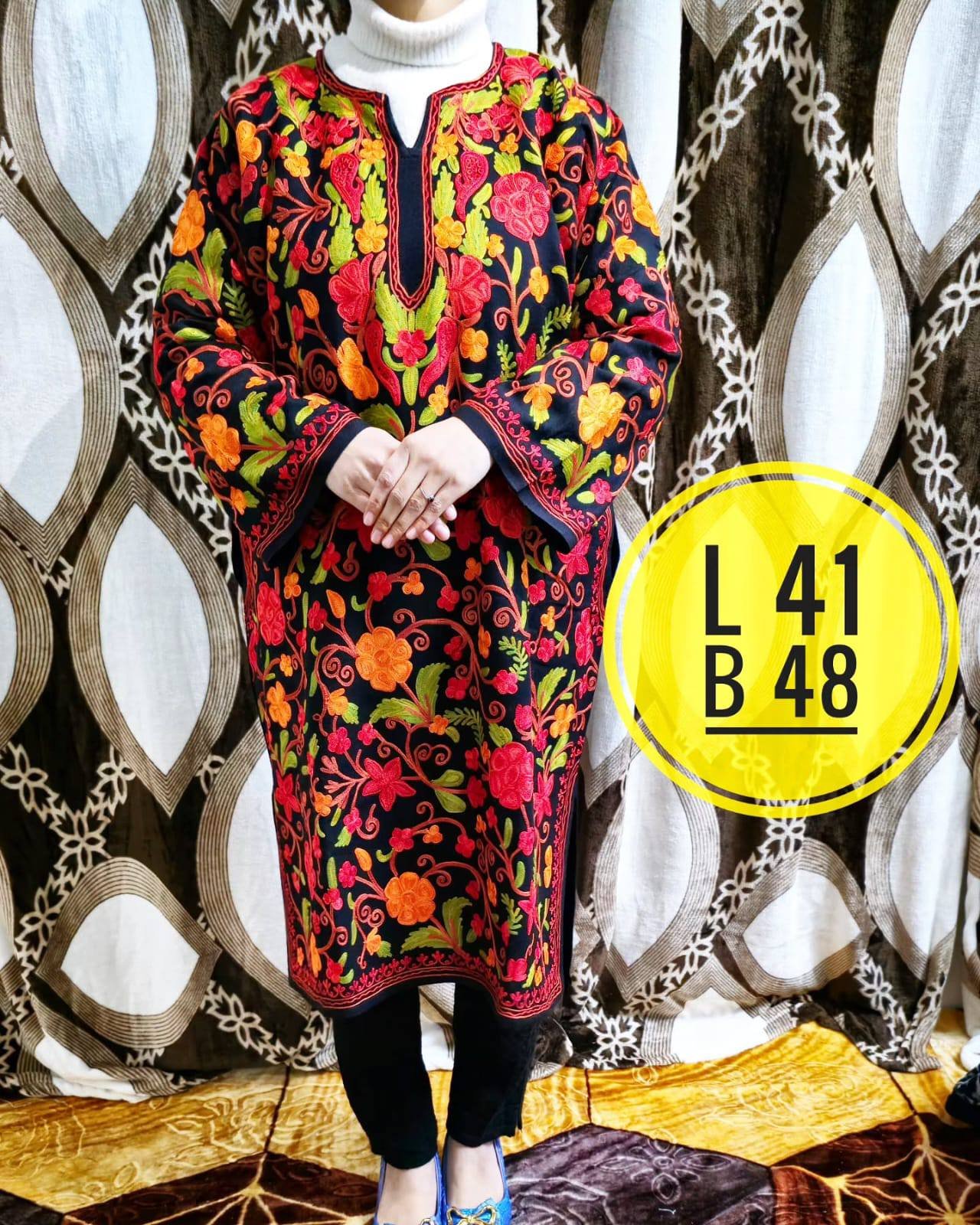 Our best-selling straight-fit pherans are a perfect blend of traditional Kashmiri artistry and modern elegance. Crafted with premium-quality fabric, these pherans are adorned with intricate full jama multicolor Kashmiri aari embroidery, showcasing the rich heritage of Kashmir.