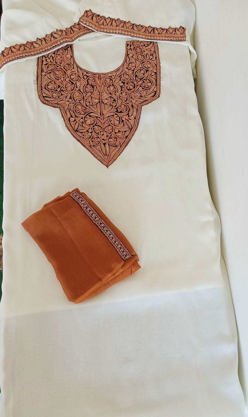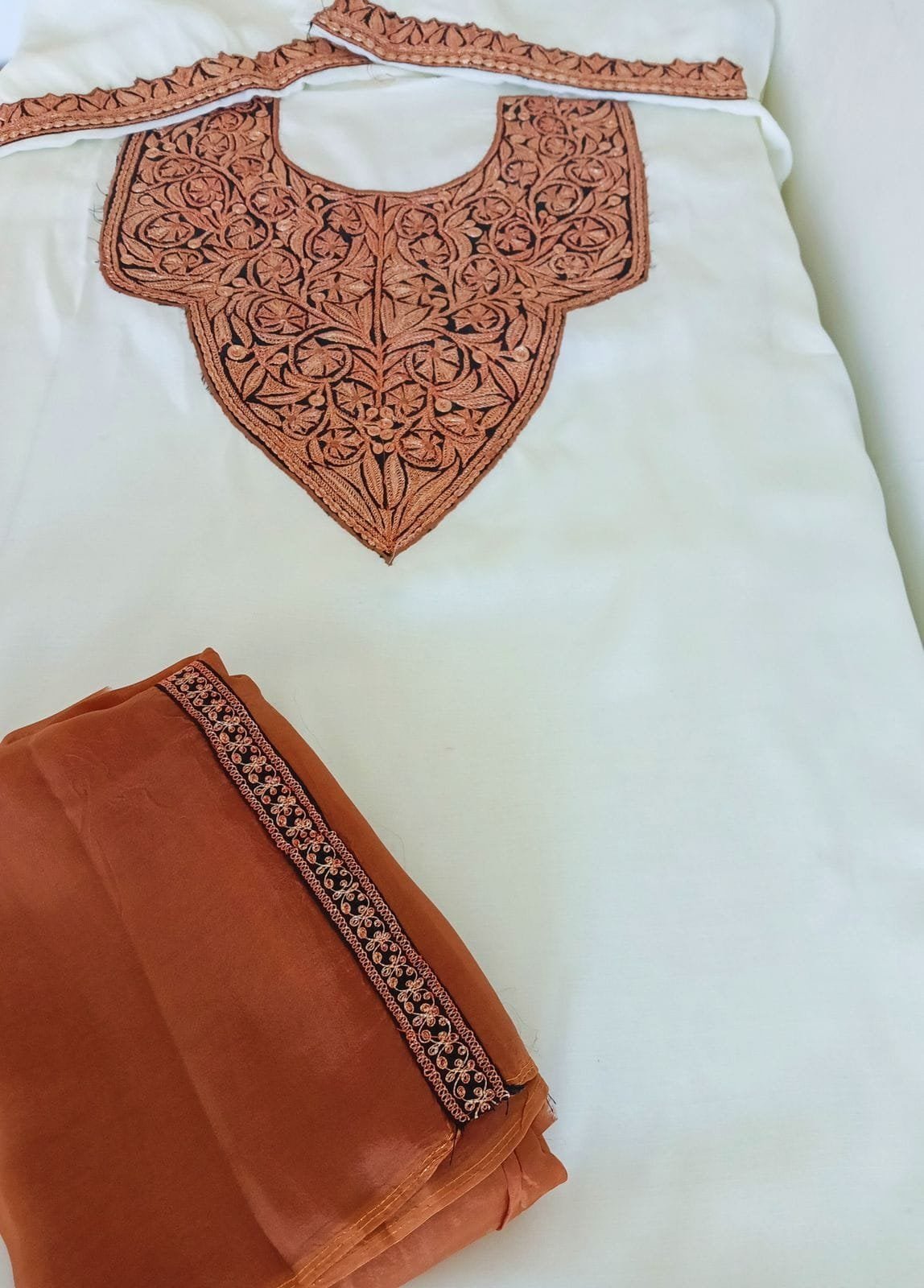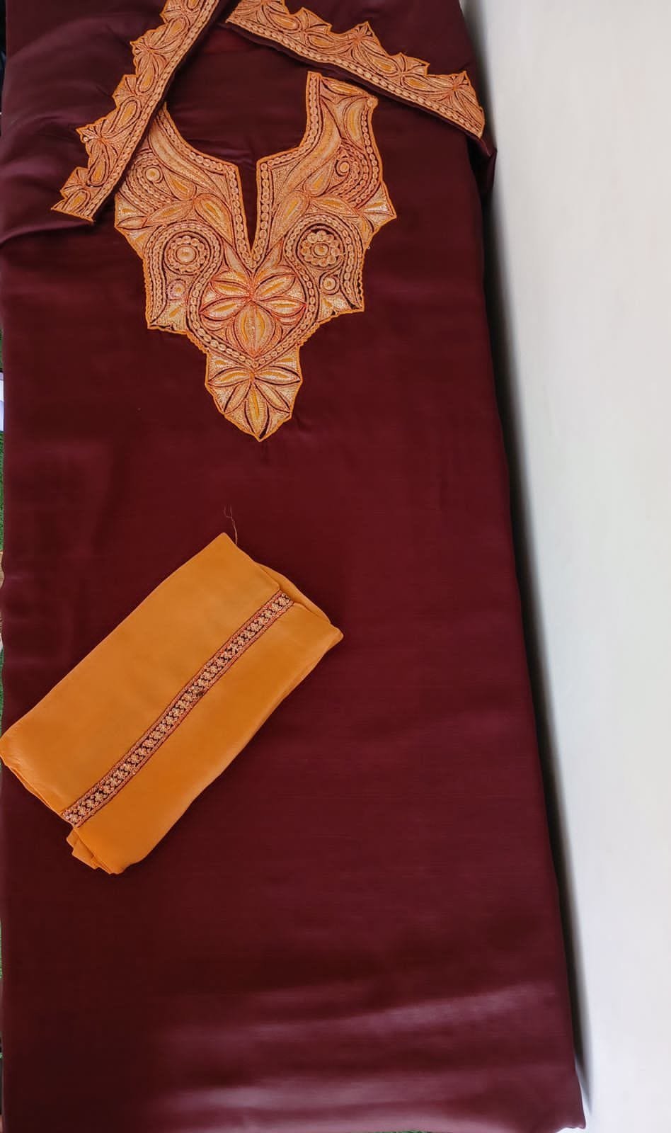 - Contrast Premium Silk Dupatta: Complete your look with a stunning contrast premium silk dupatta, meticulously crafted to complement the colors and motifs of the suit. The rich texture and vibrant hues of the dupatta add an extra layer of elegance and sophistication.