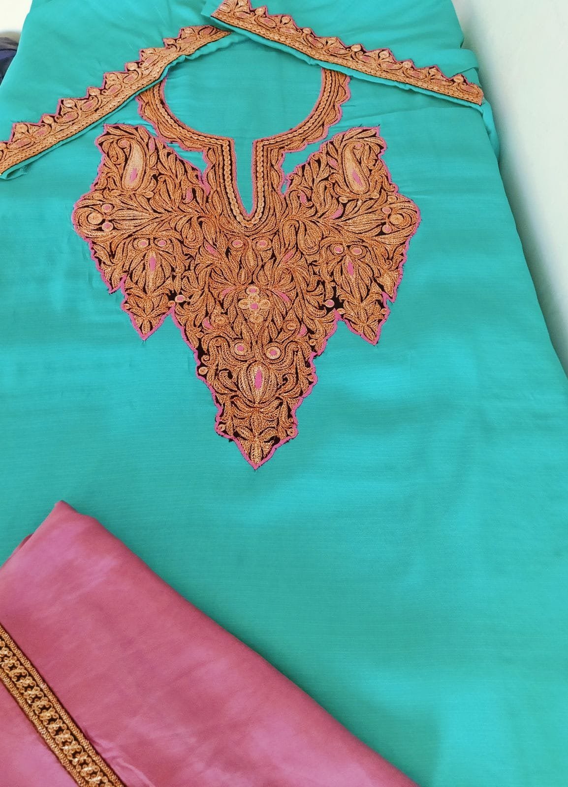 - Uniform Color Scheme: The shirt and bottom of each suit come in the same enchanting color, creating a cohesive and harmonious look that exudes effortless style and sophistication. The uniform color scheme allows the intricate Tilla work to take center stage, making a bold yet elegant statement.
