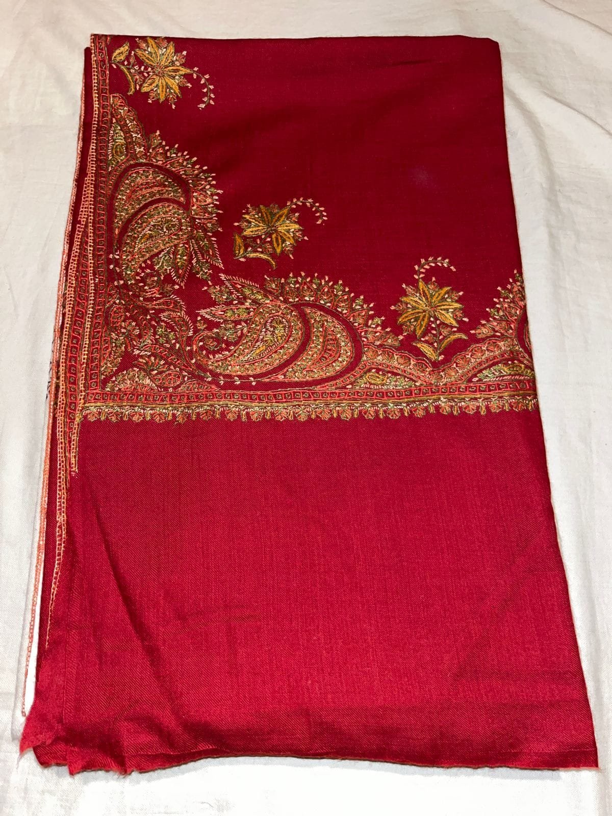 Semi Pashmina Kashmiri Shawl Bright Red, Doordar Embroidery Work