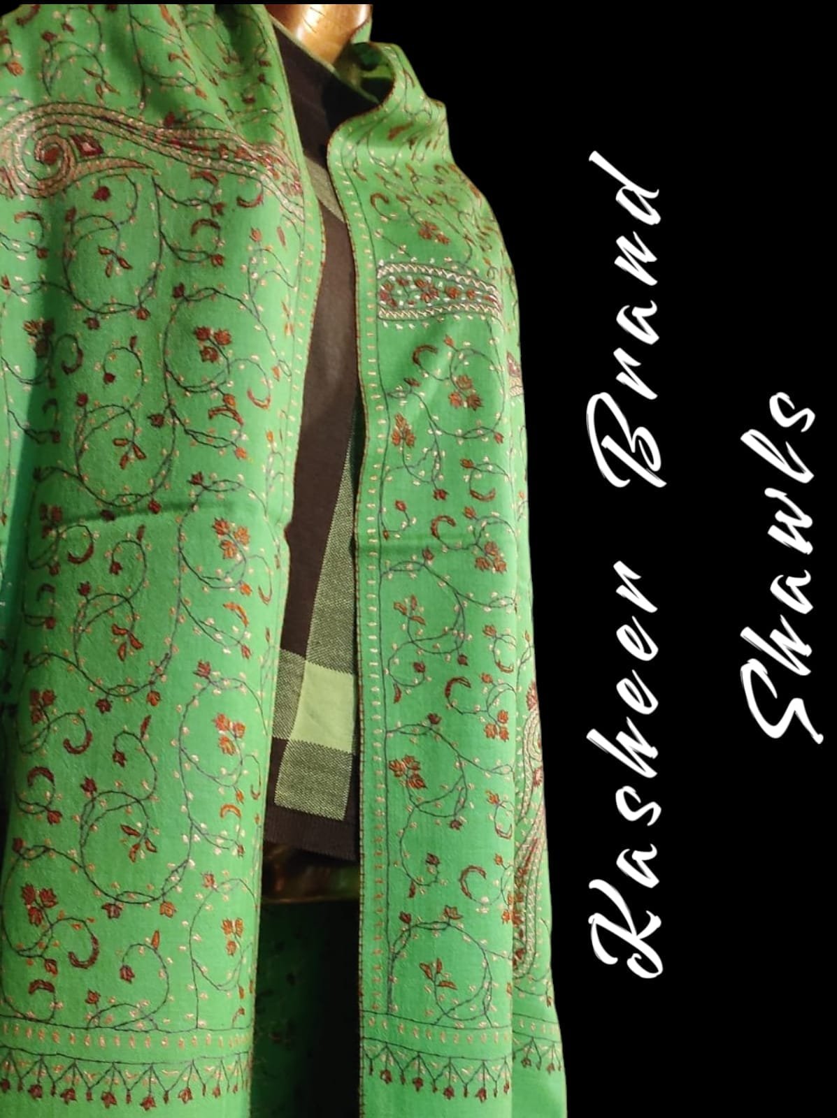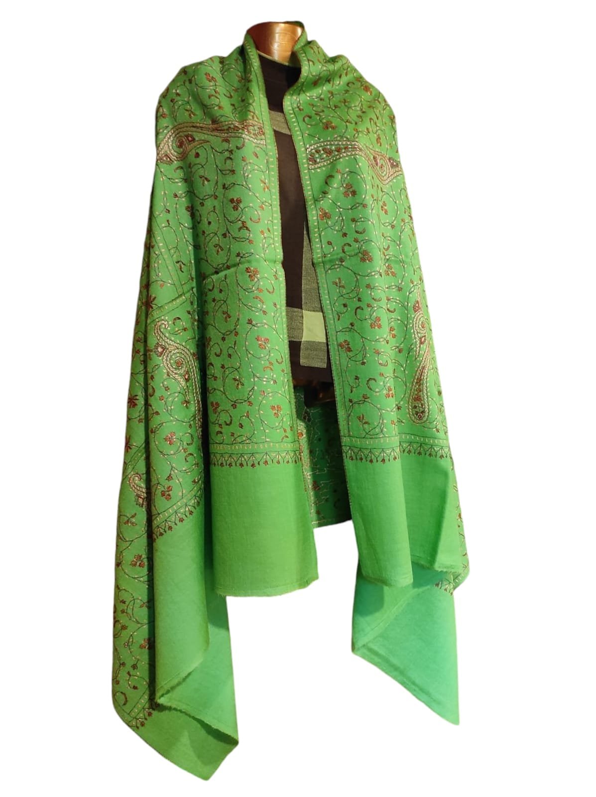 Semi Pashmina Kashmiri Shawl in Mint, Doordar Embroidery Work
