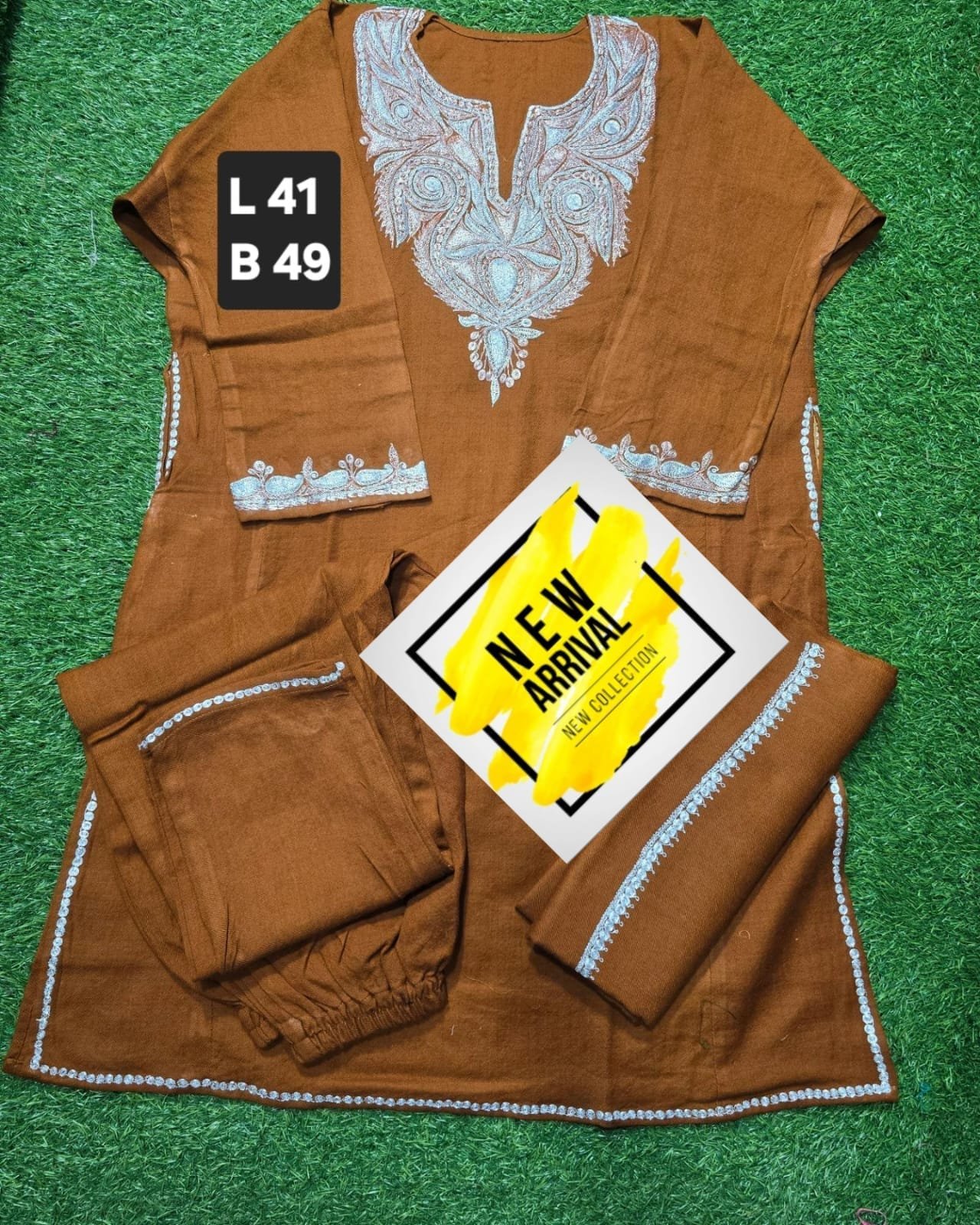 This Tilla Work Raffle Wool 3-Piece Pheran Set is not just an outfit—it’s an experience of luxury, tradition, and unmatched elegance. Make a statement and embrace the art of Kashmiri fashion with this stunning ensemble.