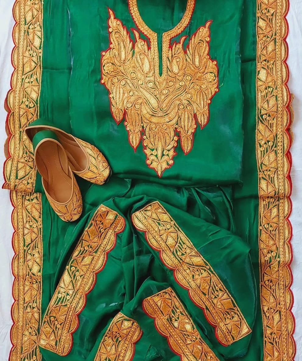 - Authentic Kashmiri Craftsmanship: This wedding dress is a true representation of Kashmir’s rich cultural heritage and the dedication of its artisans. Each piece is meticulously crafted to perfection.