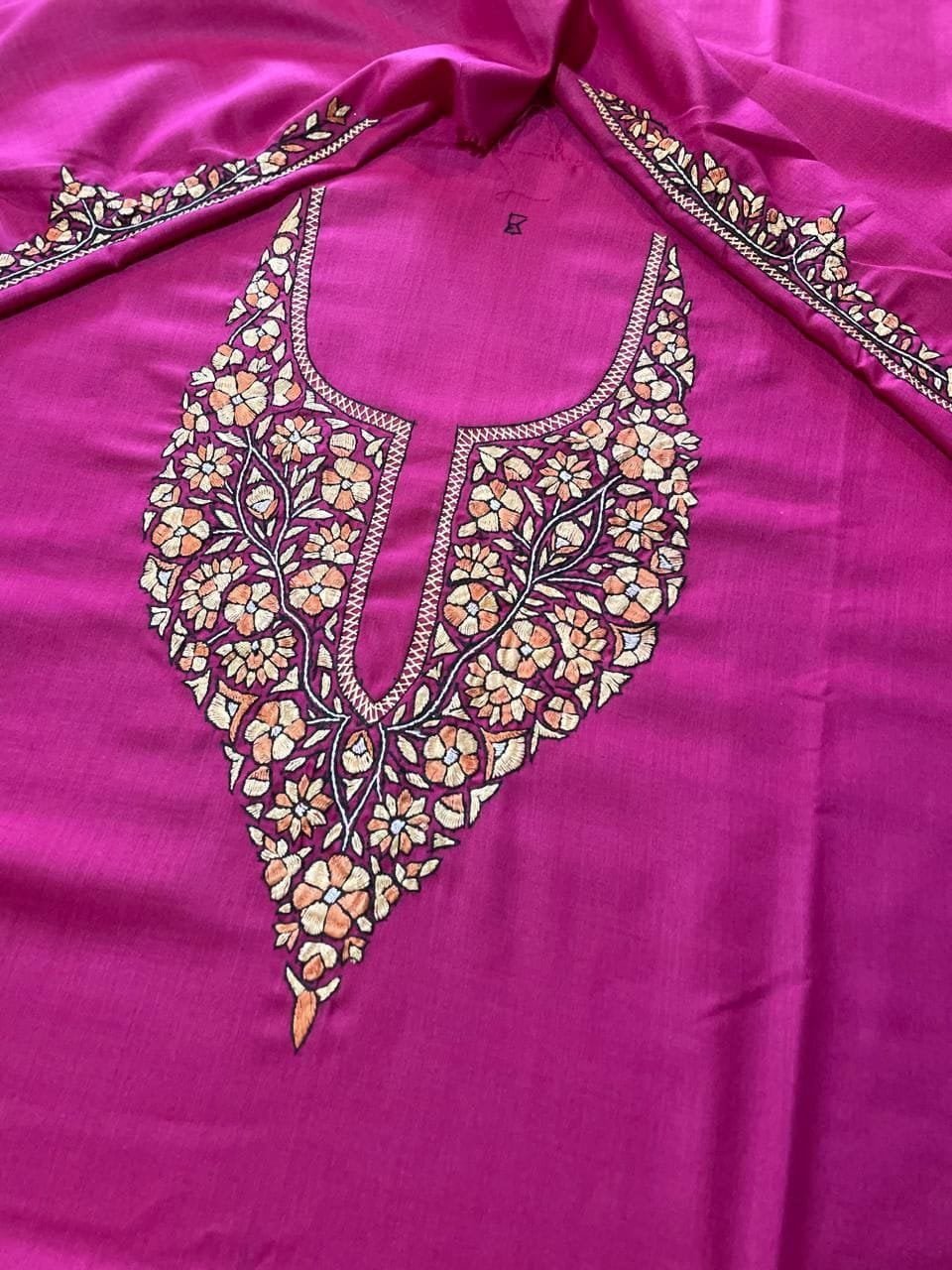 Experience the epitome of elegance with our latest offering – the Elegant 2pc Hand Paper Machie Sozni Work Premium Ruby Cotton unstitched coord sets. Crafted with exquisite attention to detail, these sets showcase the timeless artistry of Kashmiri handwork, guaranteed to elevate your wardrobe to new heights of sophistication.
