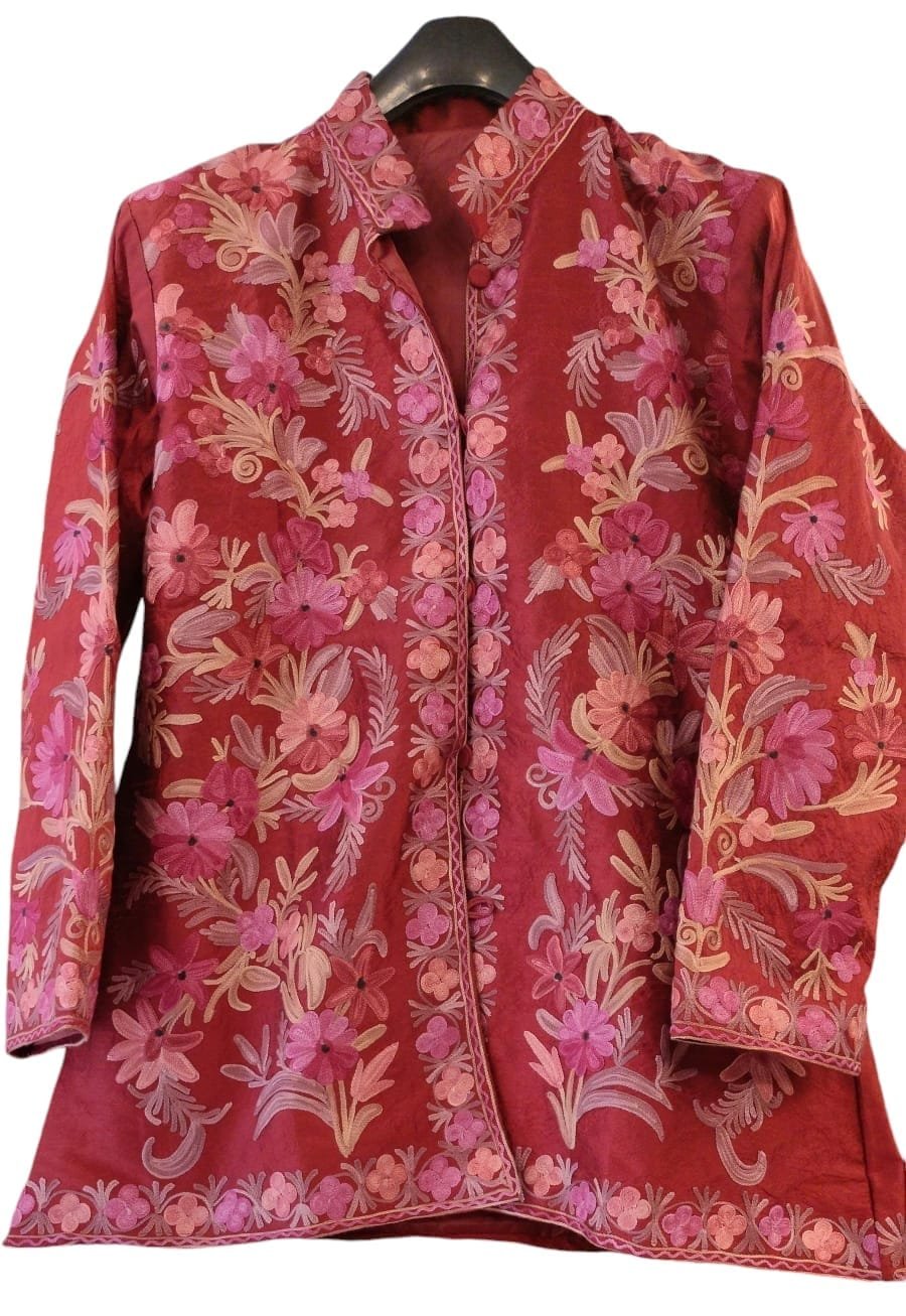 Kashmiri Short Jacket with Aari Embroidery in Red Colour
