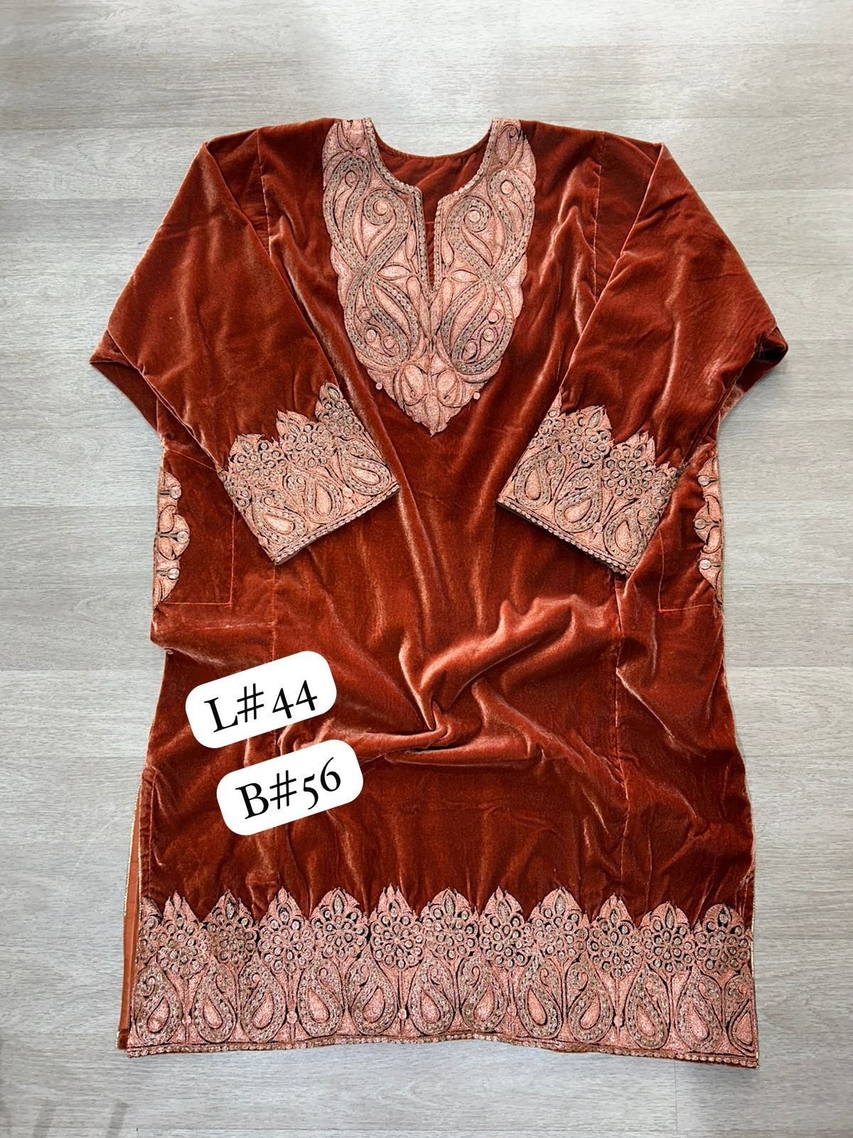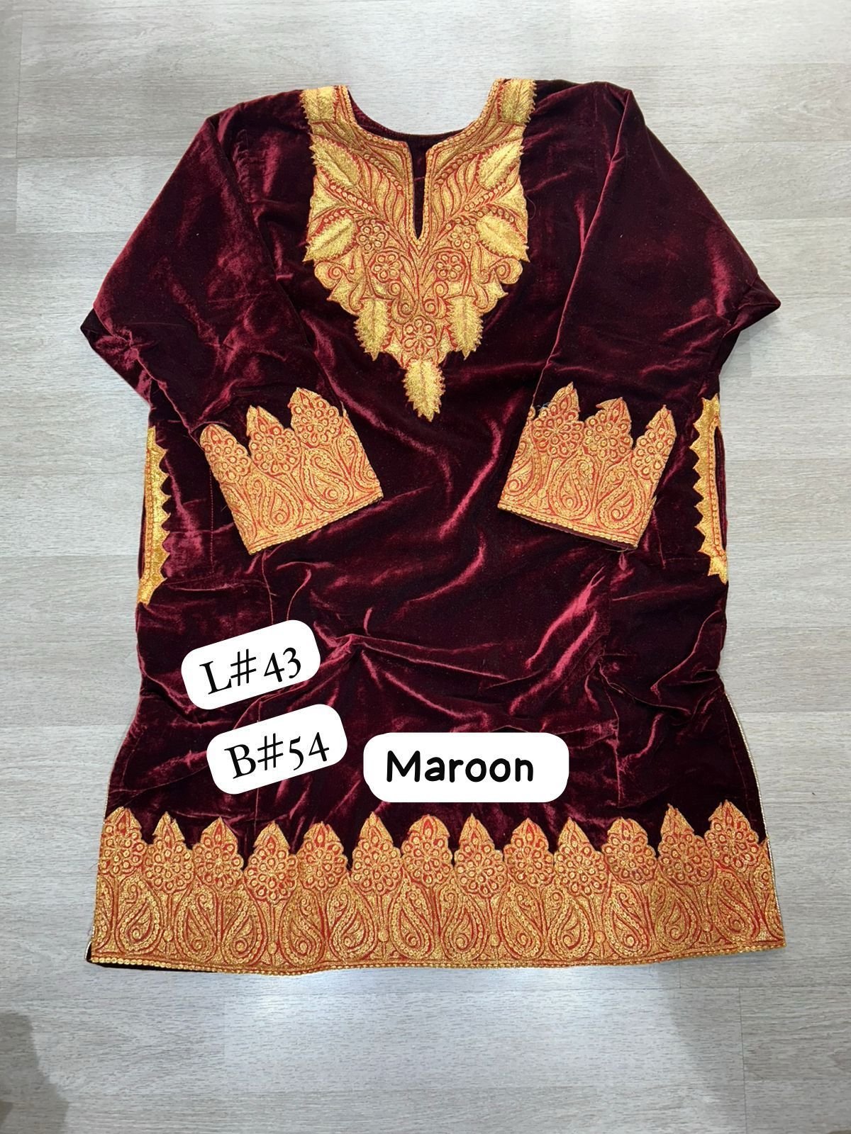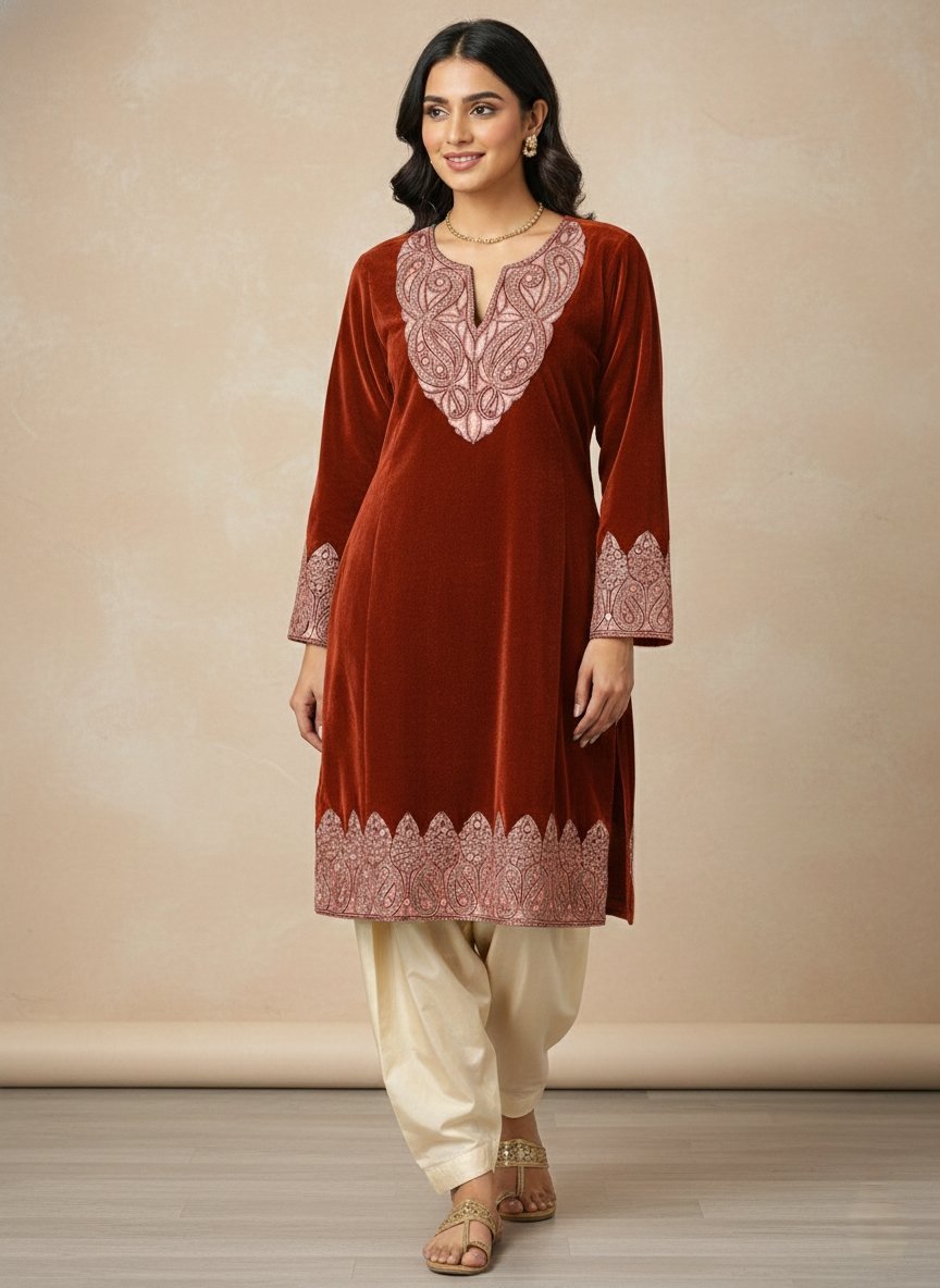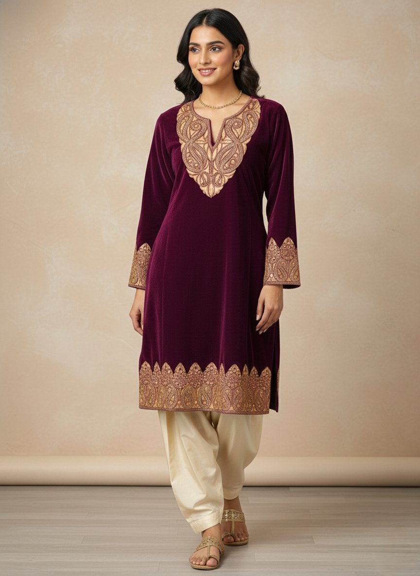- Fabric: It is made from 9999-micron 7star fabric. In the context of Kashmiri velvet and woolens, this terminology refers to a high-grade, ultra-soft, and dense material (likely a premium velvet or raffle wool) known for its “7-star” luxury finish and warmth.